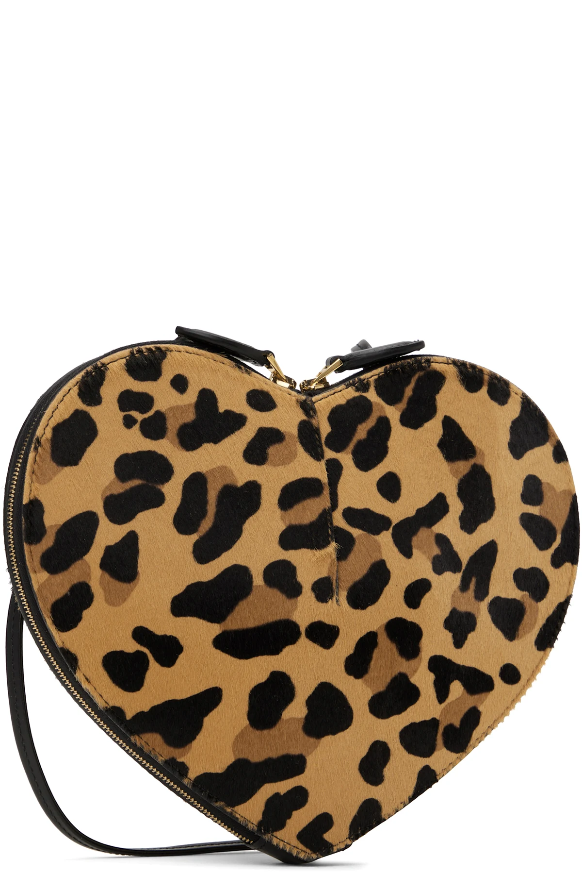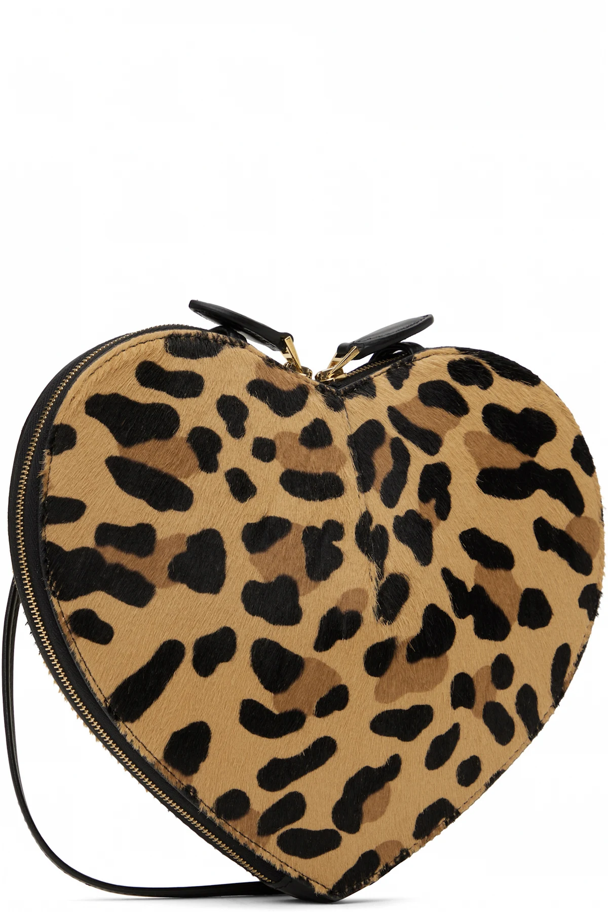 Structured heart-shaped calf-hair shoulder bag in tan and brown.