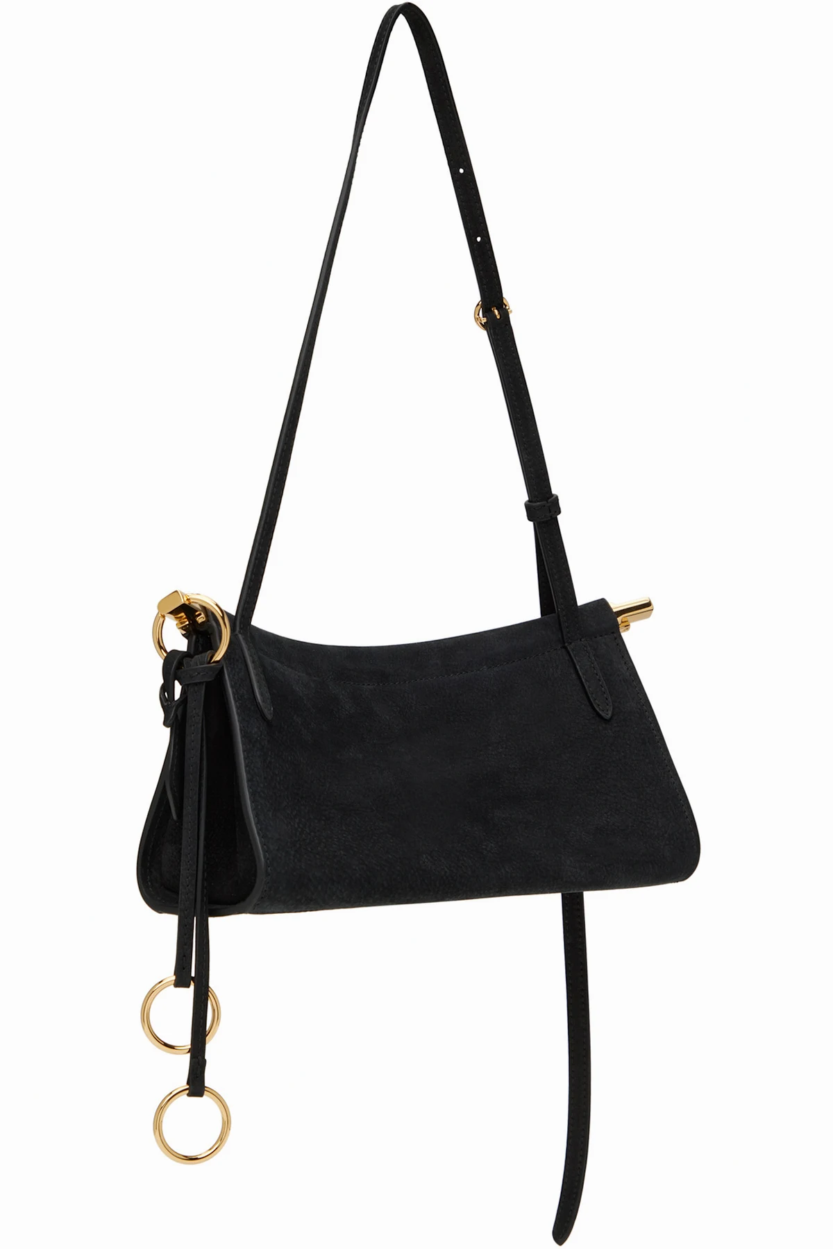 Calfskin nubuck shoulder bag in black.