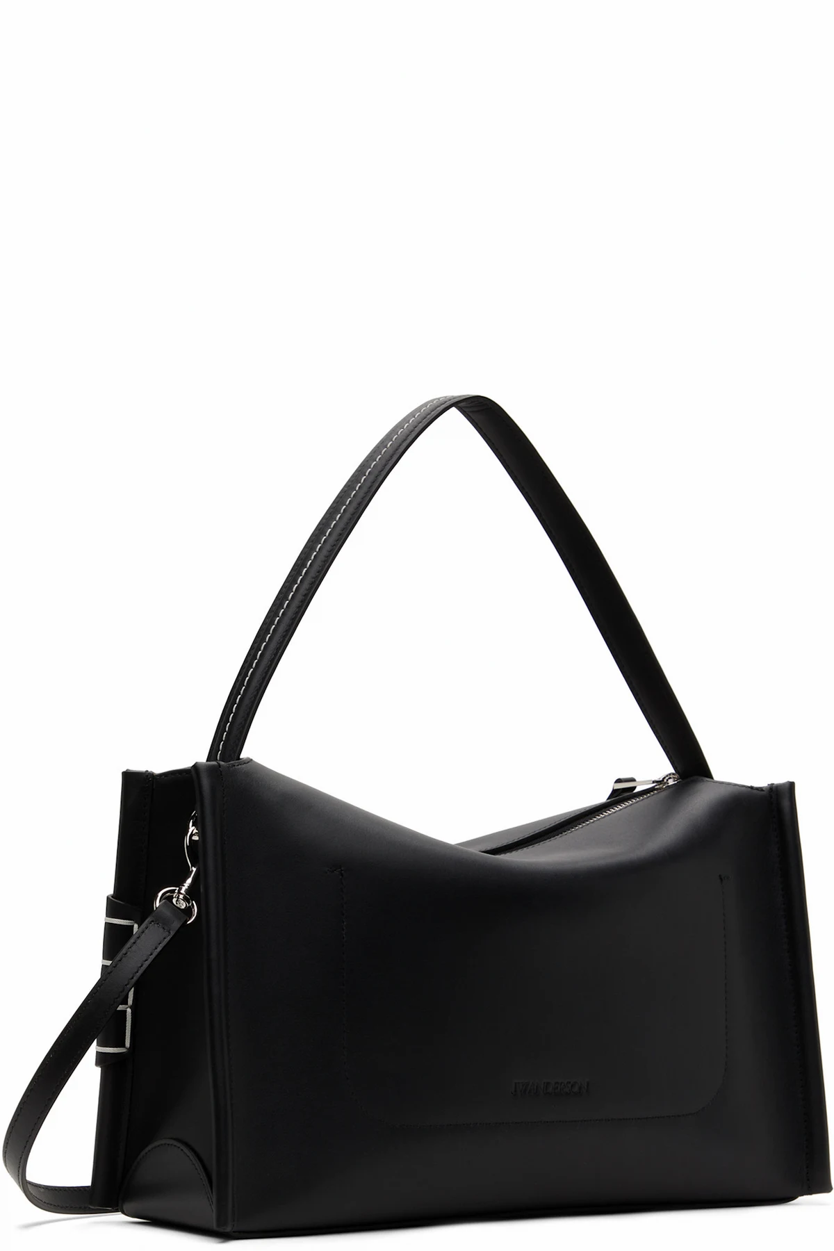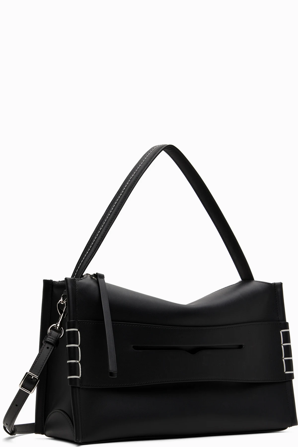 Buffed calfskin shoulder bag in black.