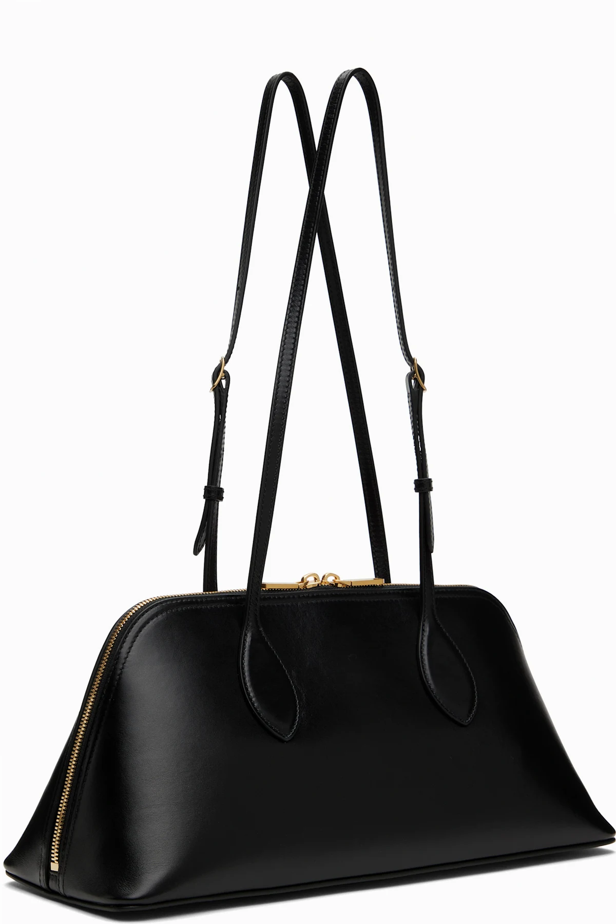 Buffed calfskin shoulder bag in black.