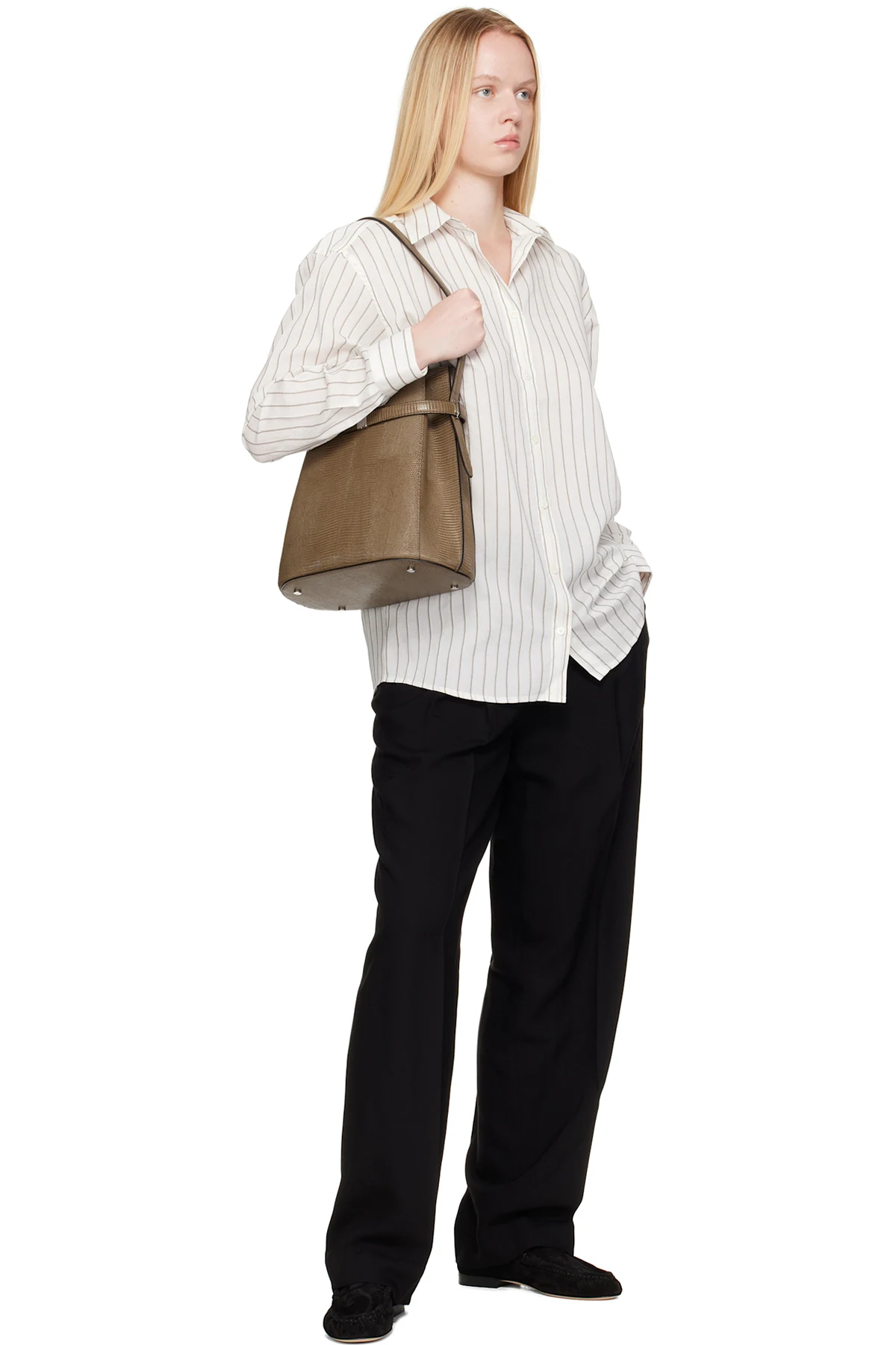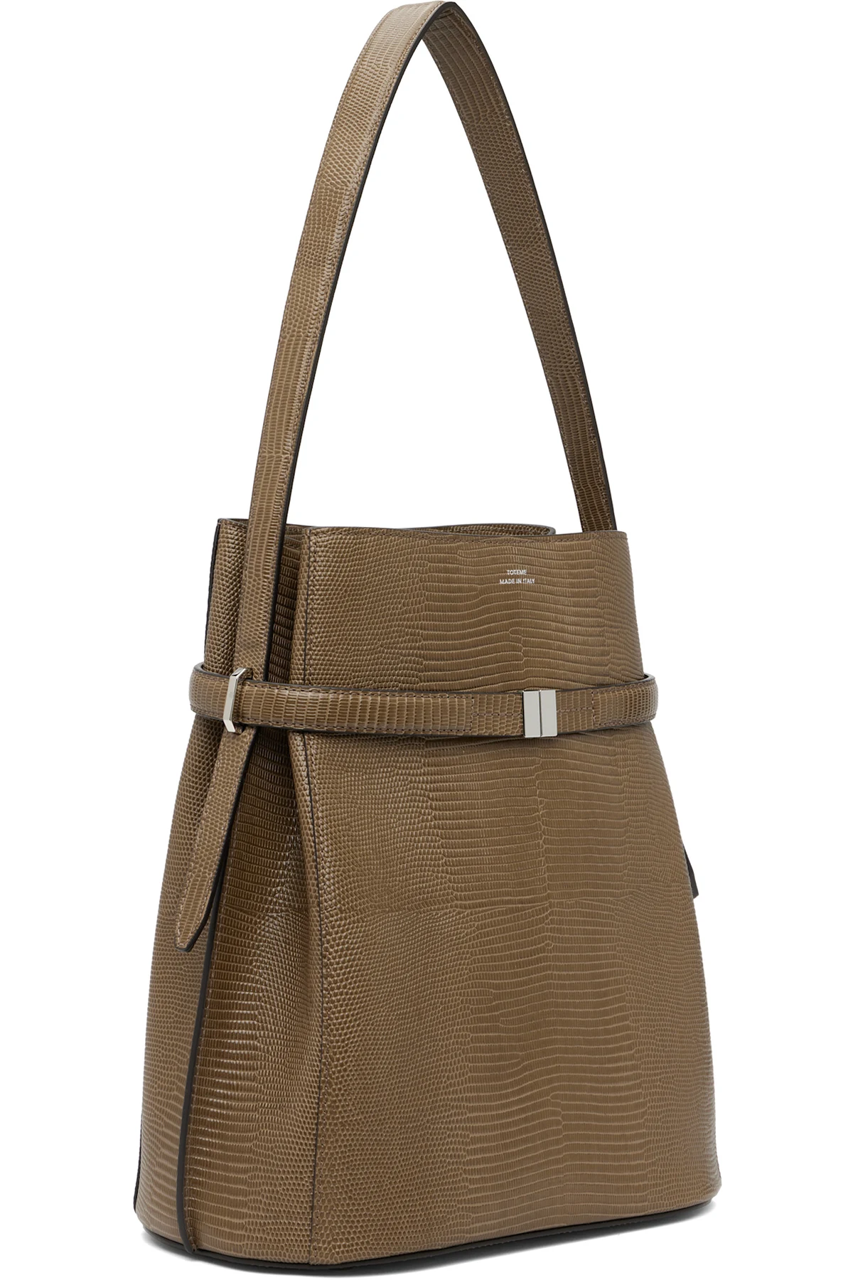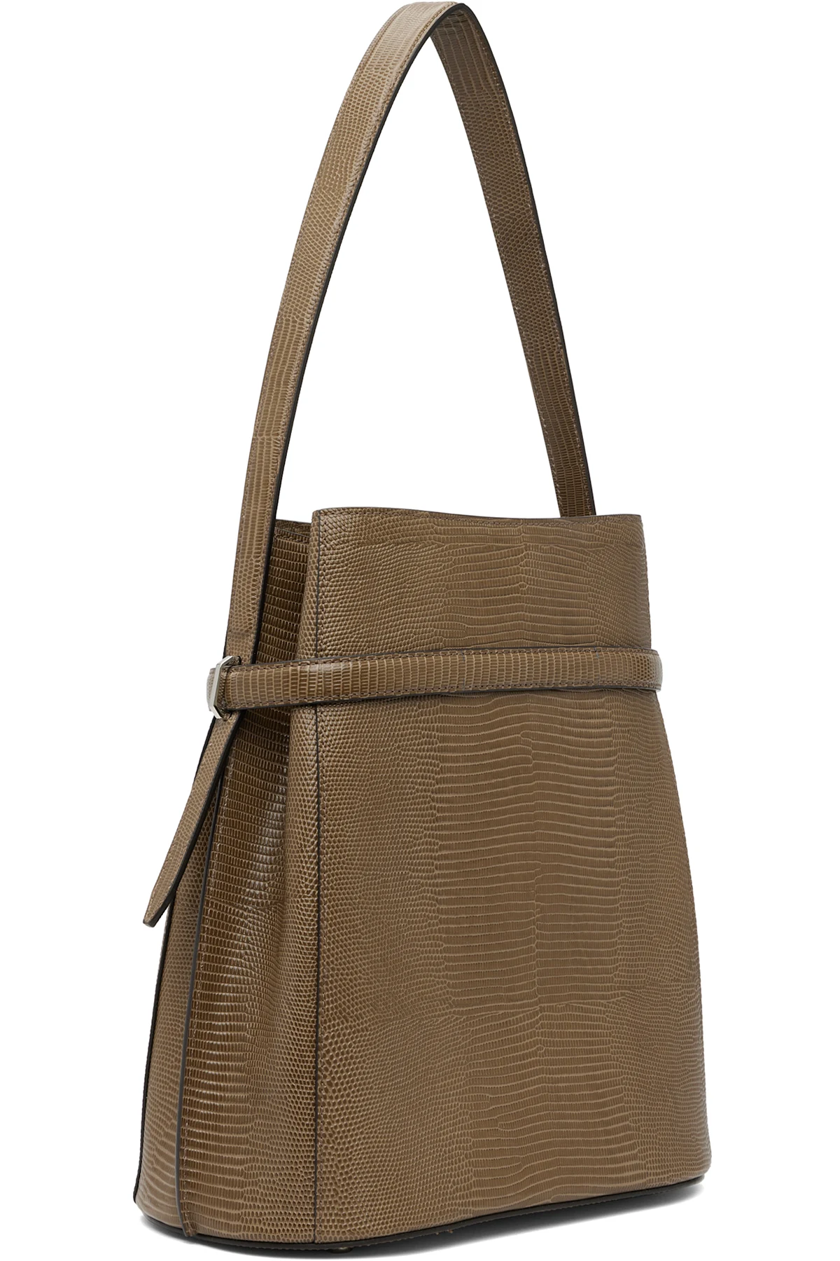 Khaki Belted Lizard-Embossed Bucket Bag