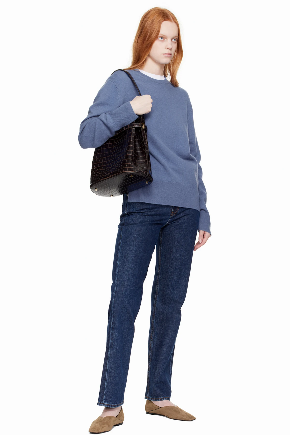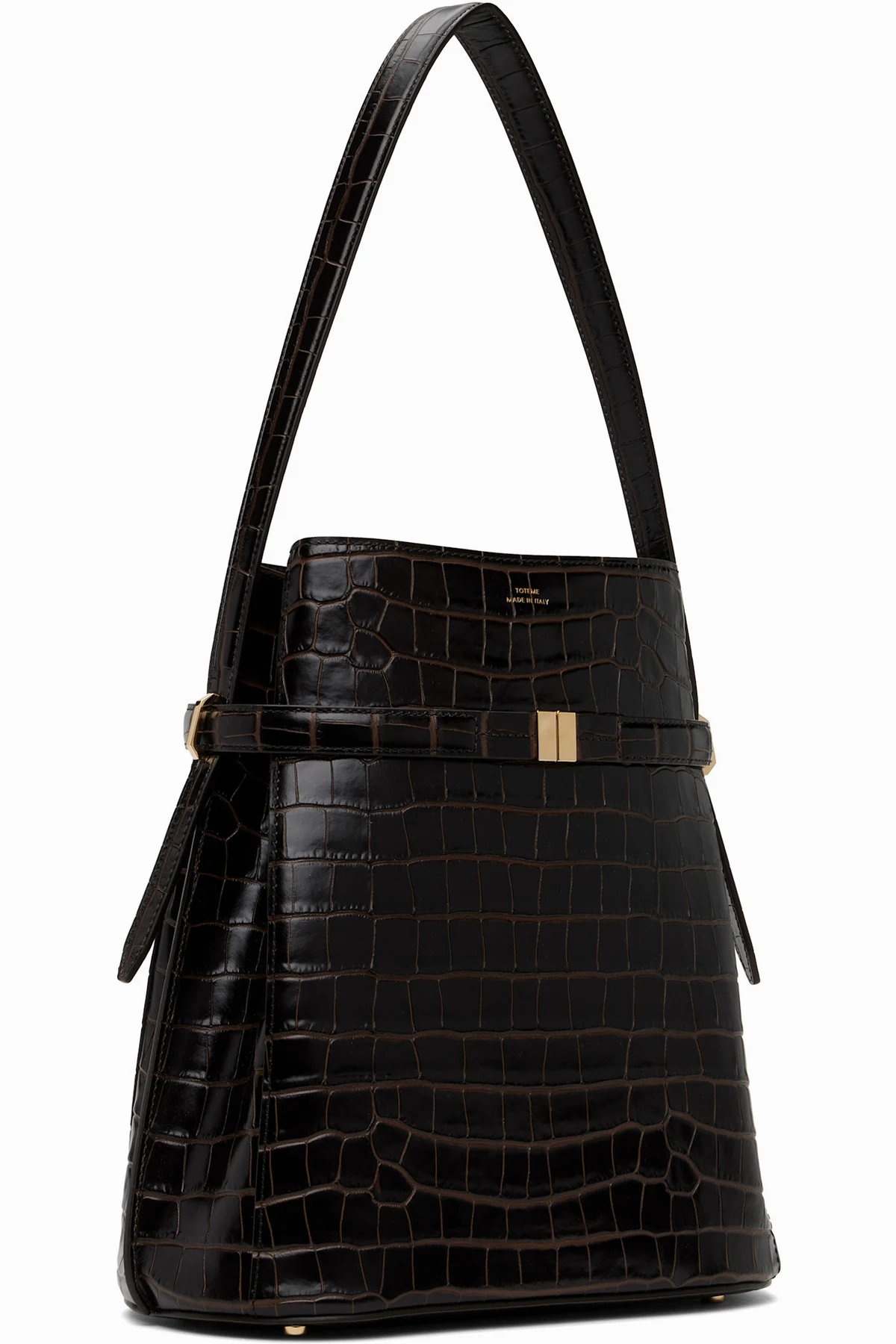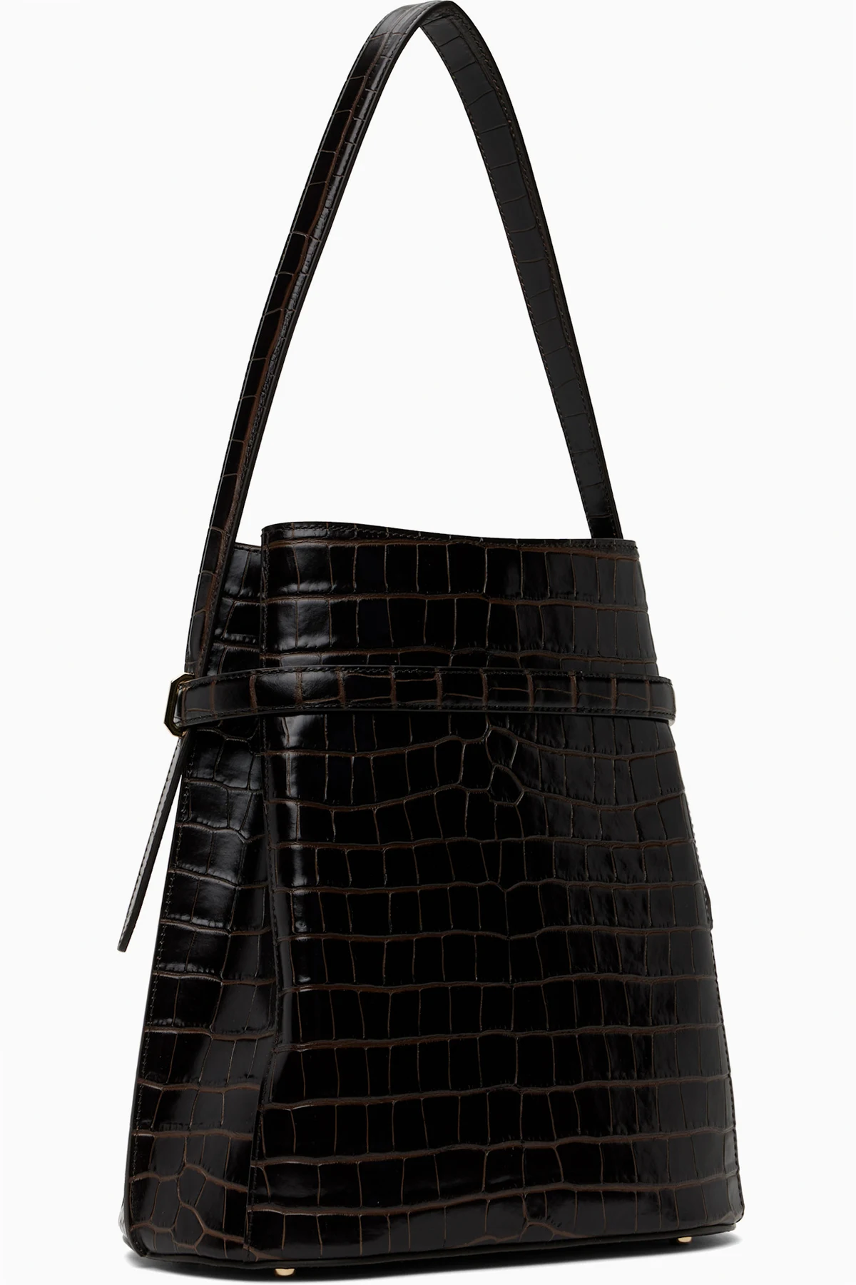 LWG-certified croc-embossed leather shoulder bag in brown.