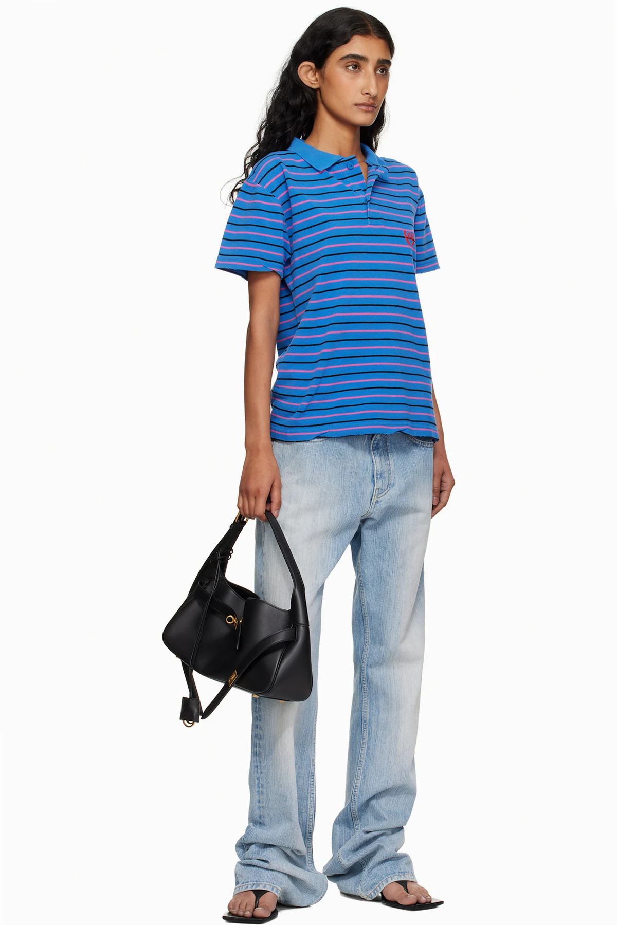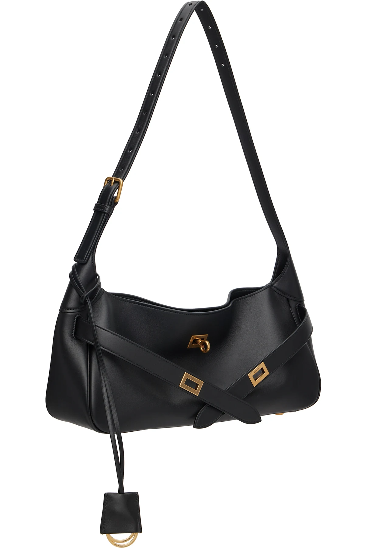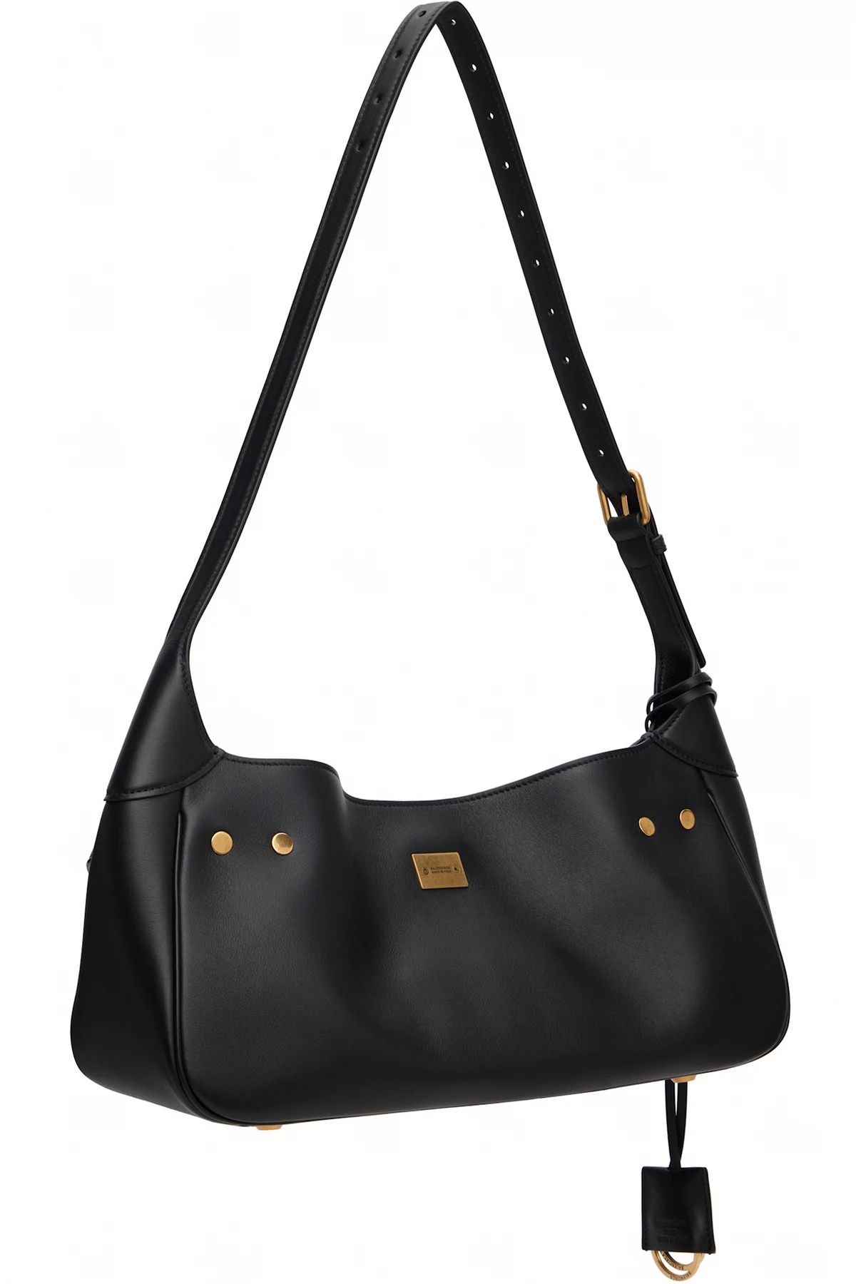 · Logo-engraved antiqued gold-tone hardware