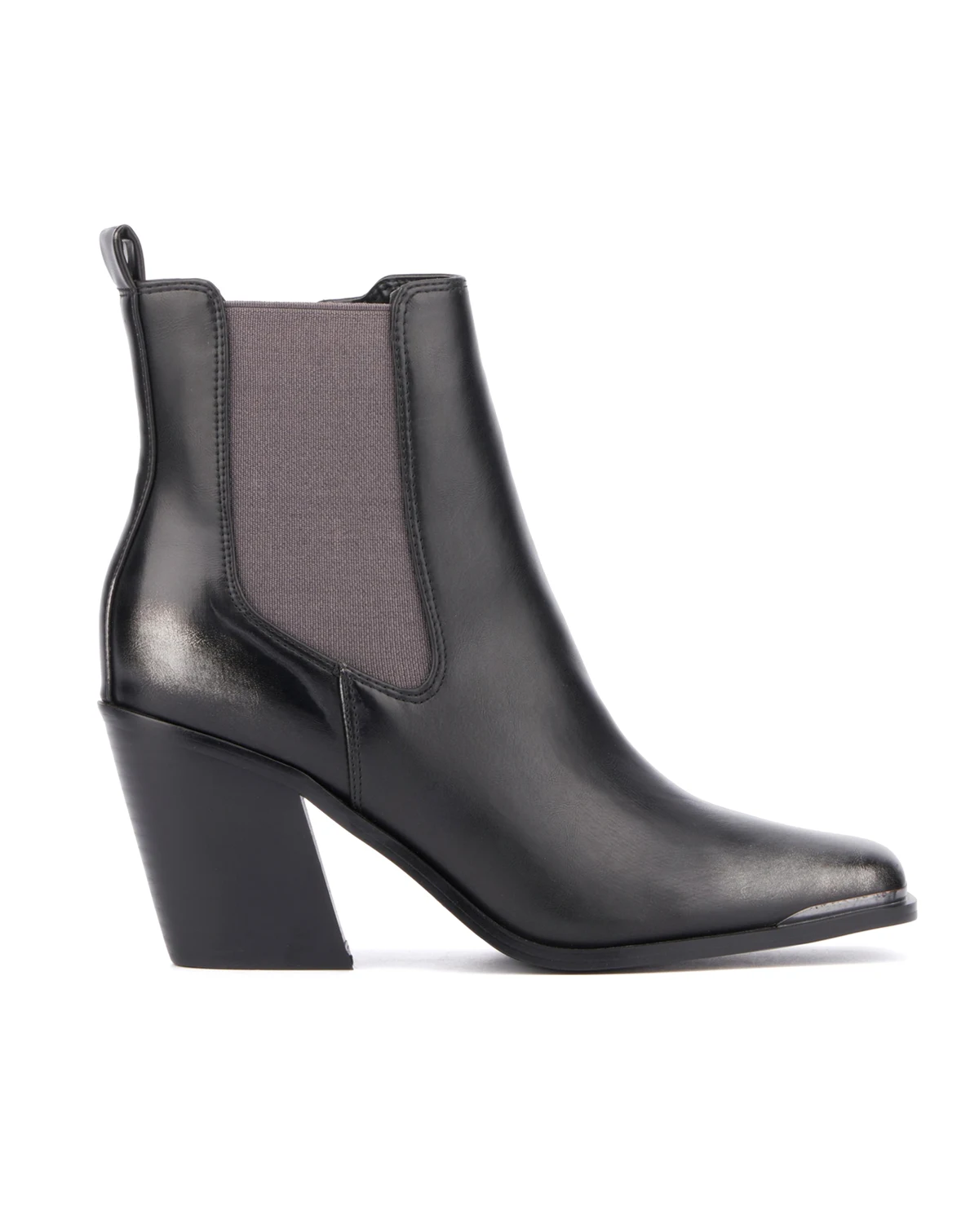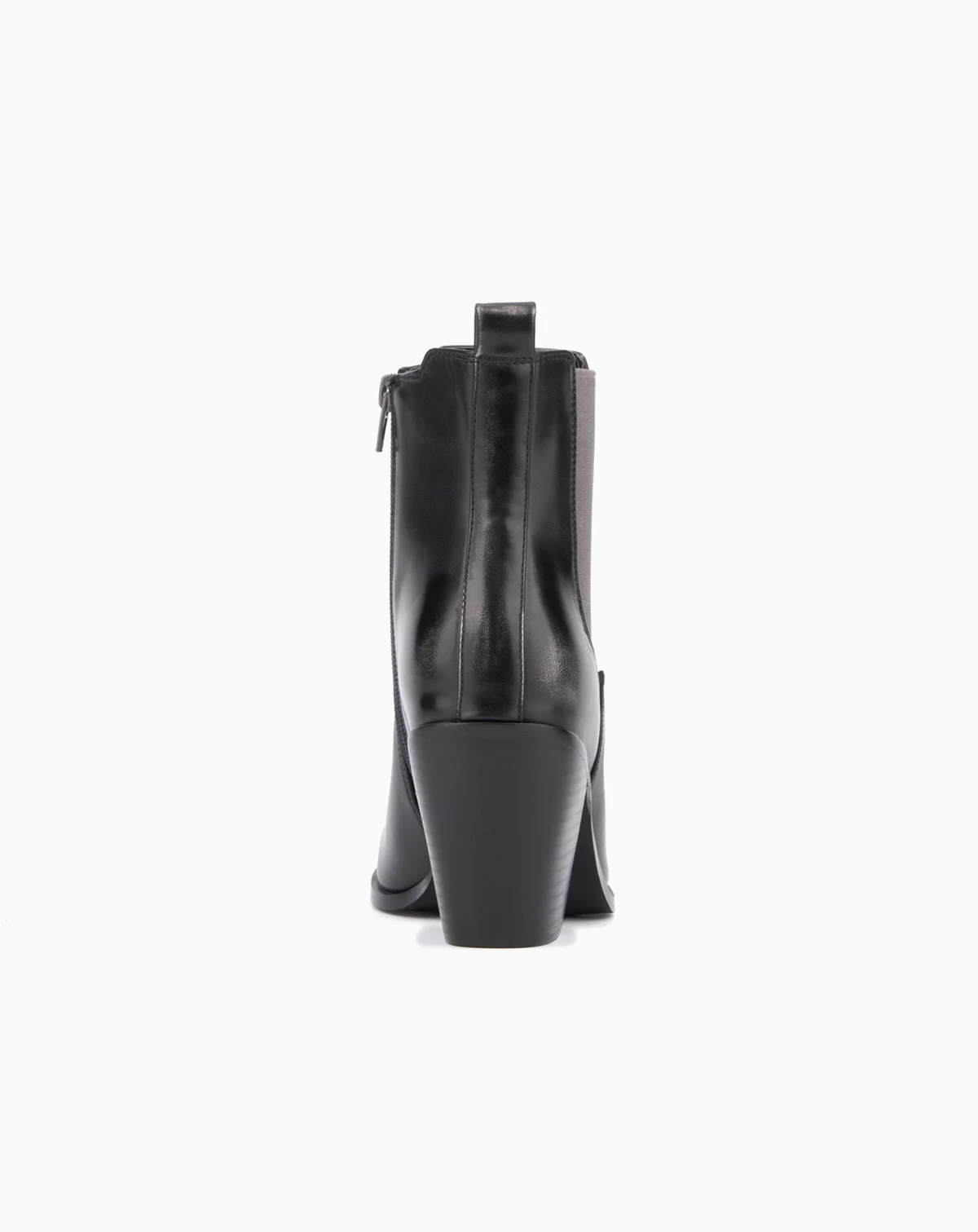 The Trine effortlessly ties your look together with its western-inspired design. Featuring convenient elastic gores for easy on and off access, and a comfortable block heel, this boot combines style and practicality for a seamless addition to your wardrobe. Crafted with attention to detail and comfort, it offers versatility for various occasions, from casual outings to evenings out. Step out confidently knowing The Trine complements your style with its classic charm and modern functionality, perfect for any fashion-forward individual.