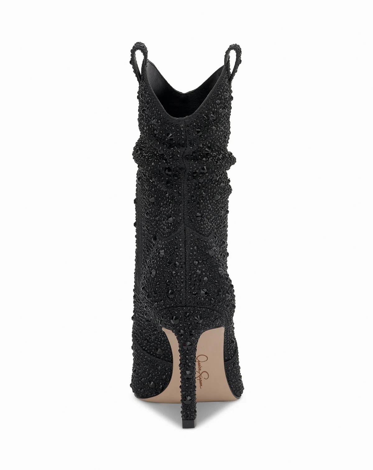Shimmering ike a rhinestone cowboy, the Jessica Simpson Evgena boots blend slouched shafts and embellishments over sleek stiletto heels for a gorgeous finish.