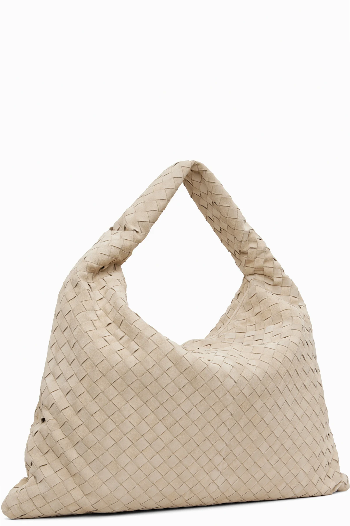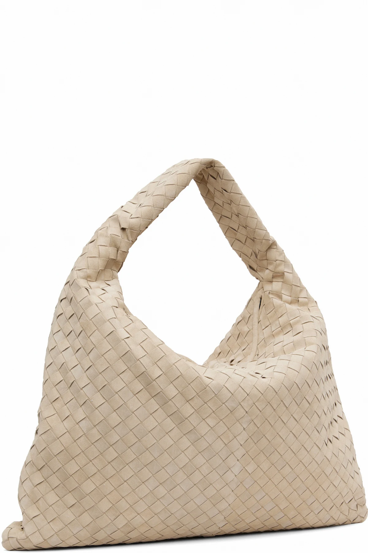 Intrecciato-woven calfskin suede shoulder bag.