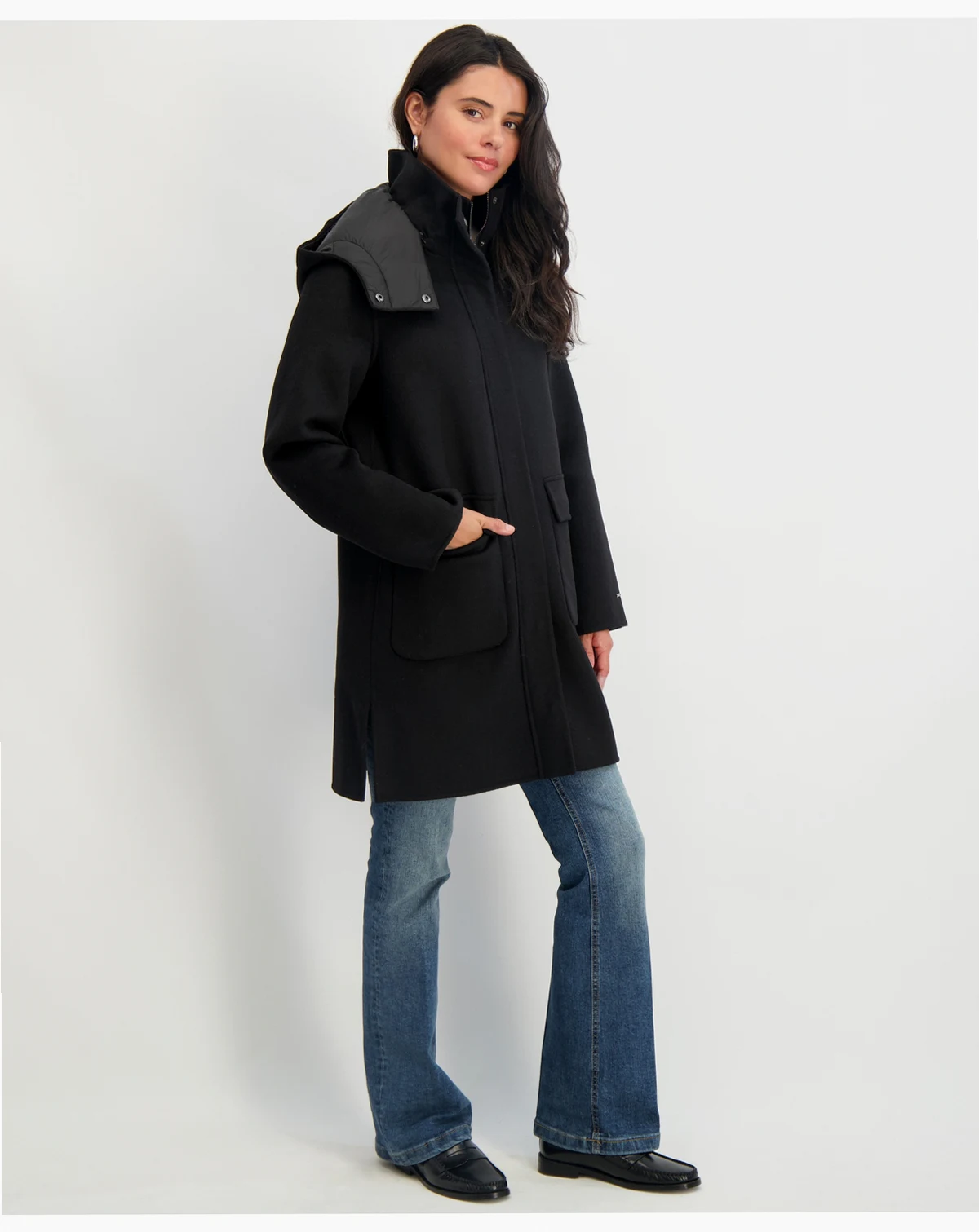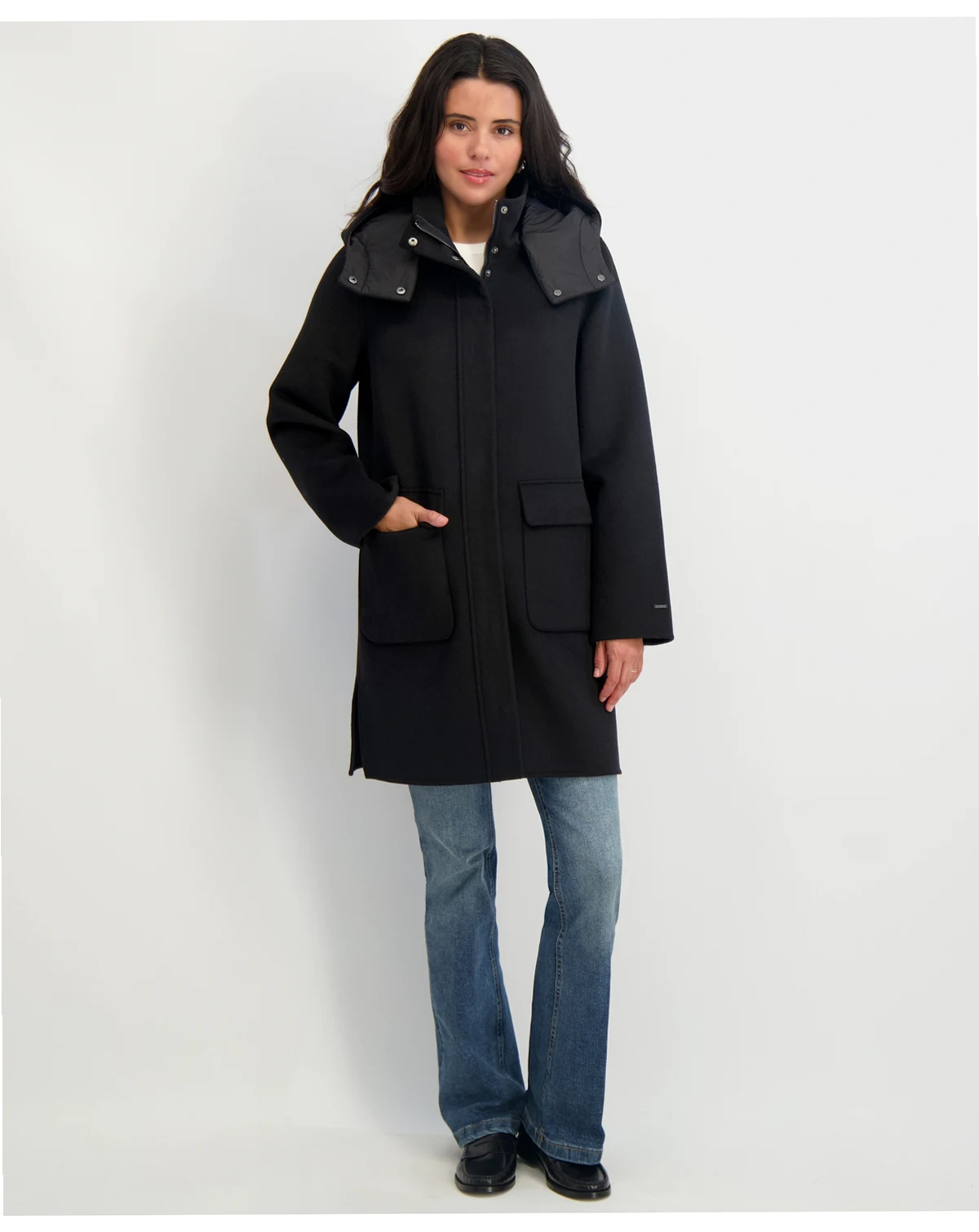 Get your hands on this cozy coat from Tahari, a cold-weather staple designed with handy patch pockets and a fixed hood.