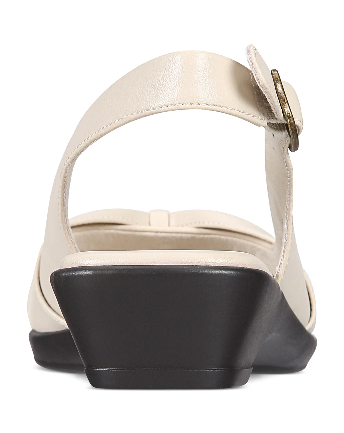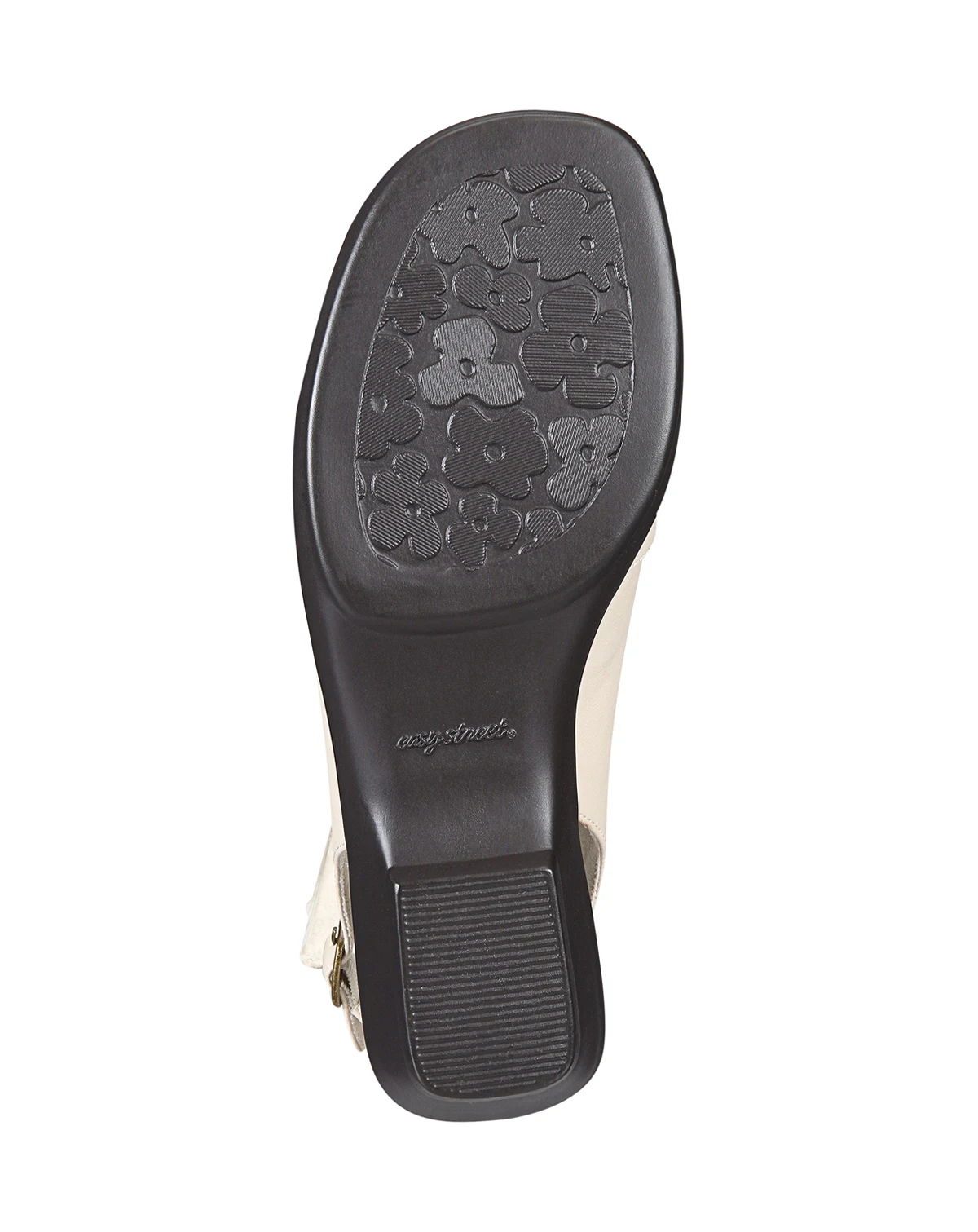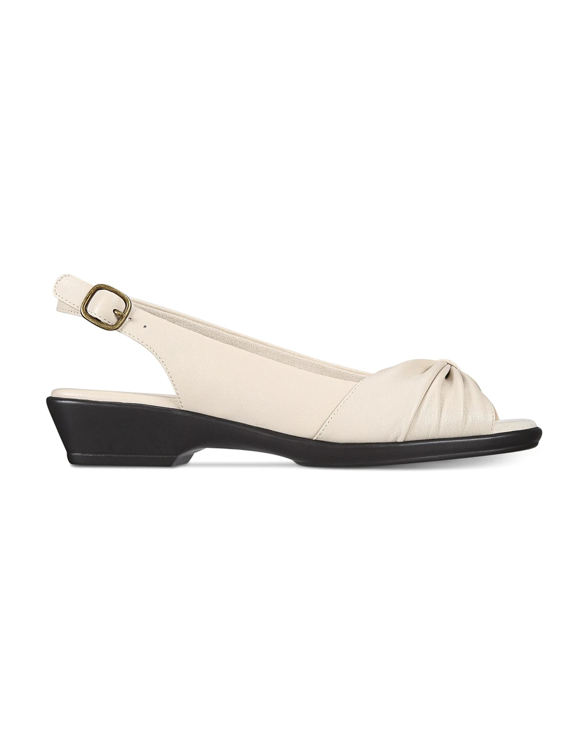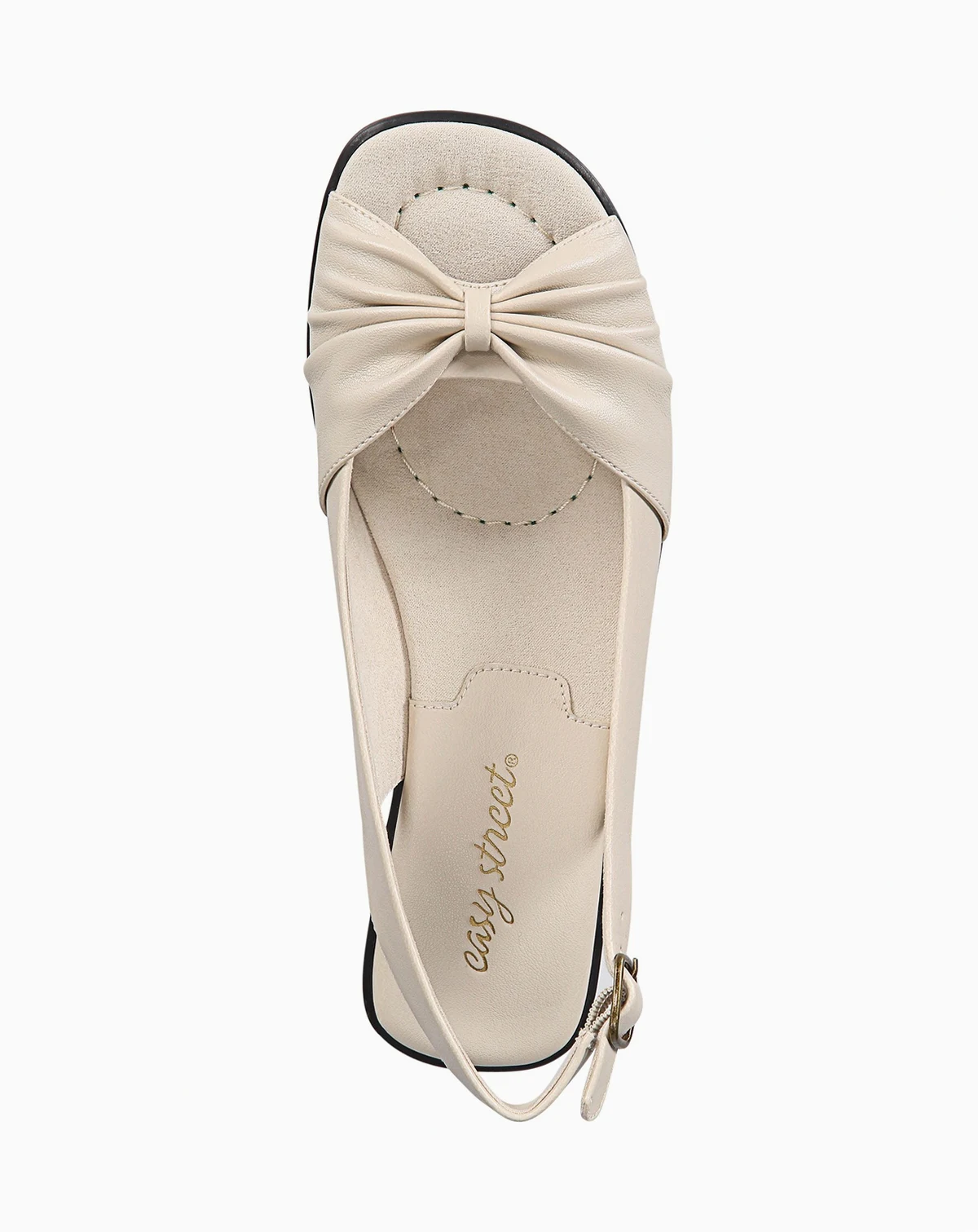 Ruching details create a sweet bow effect on Easy Street's Fantasia sandals with a modest heel and slingback design for stylish comfort.