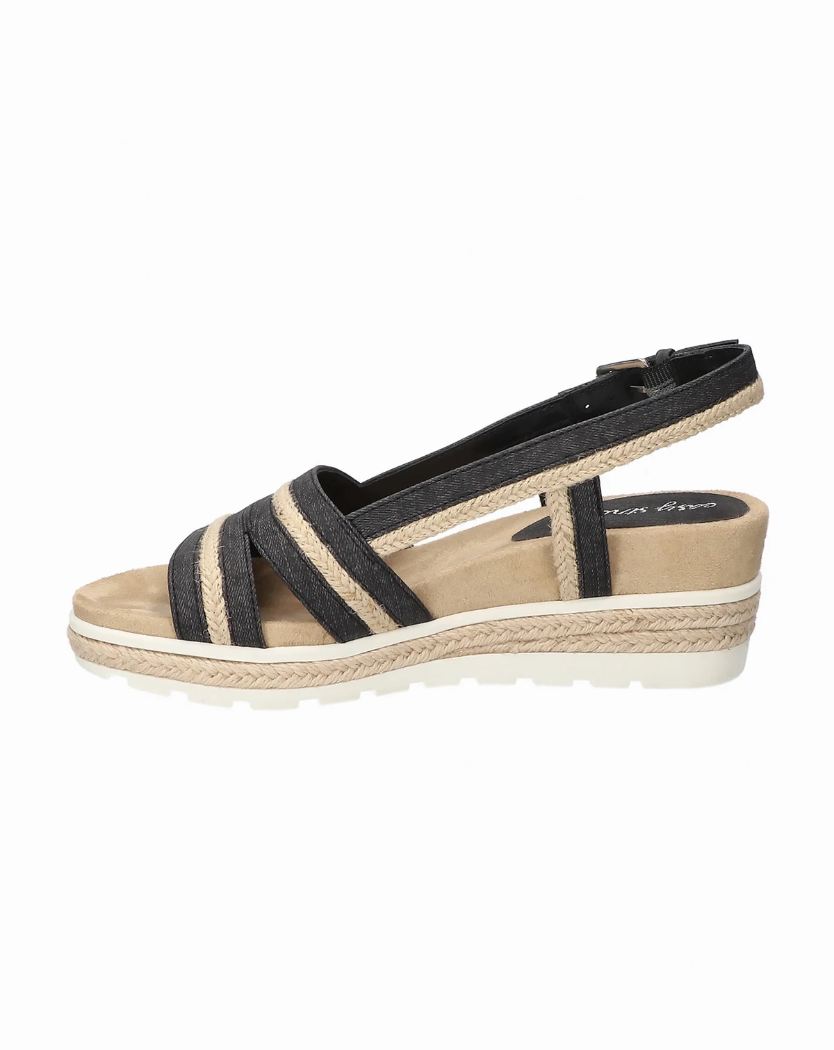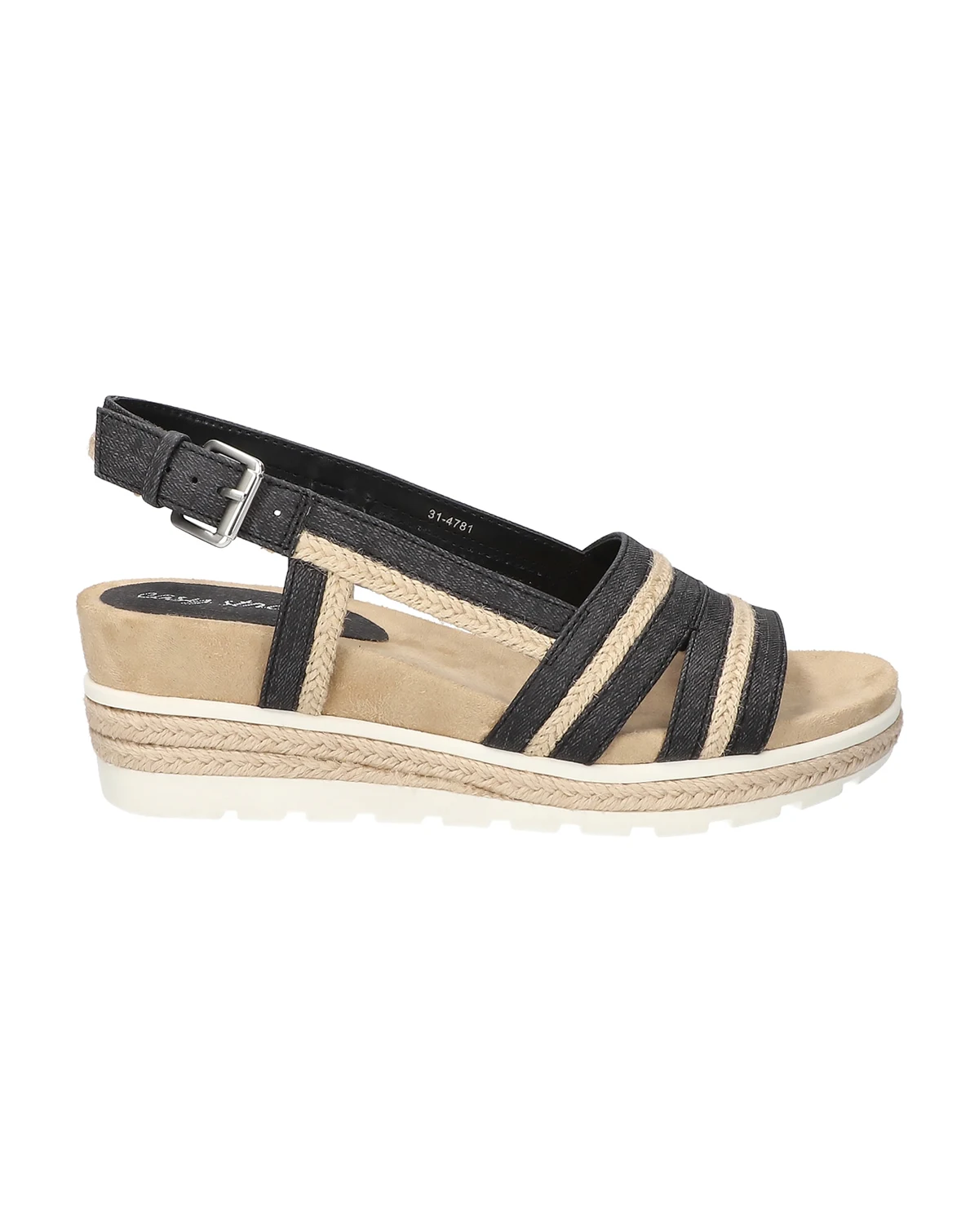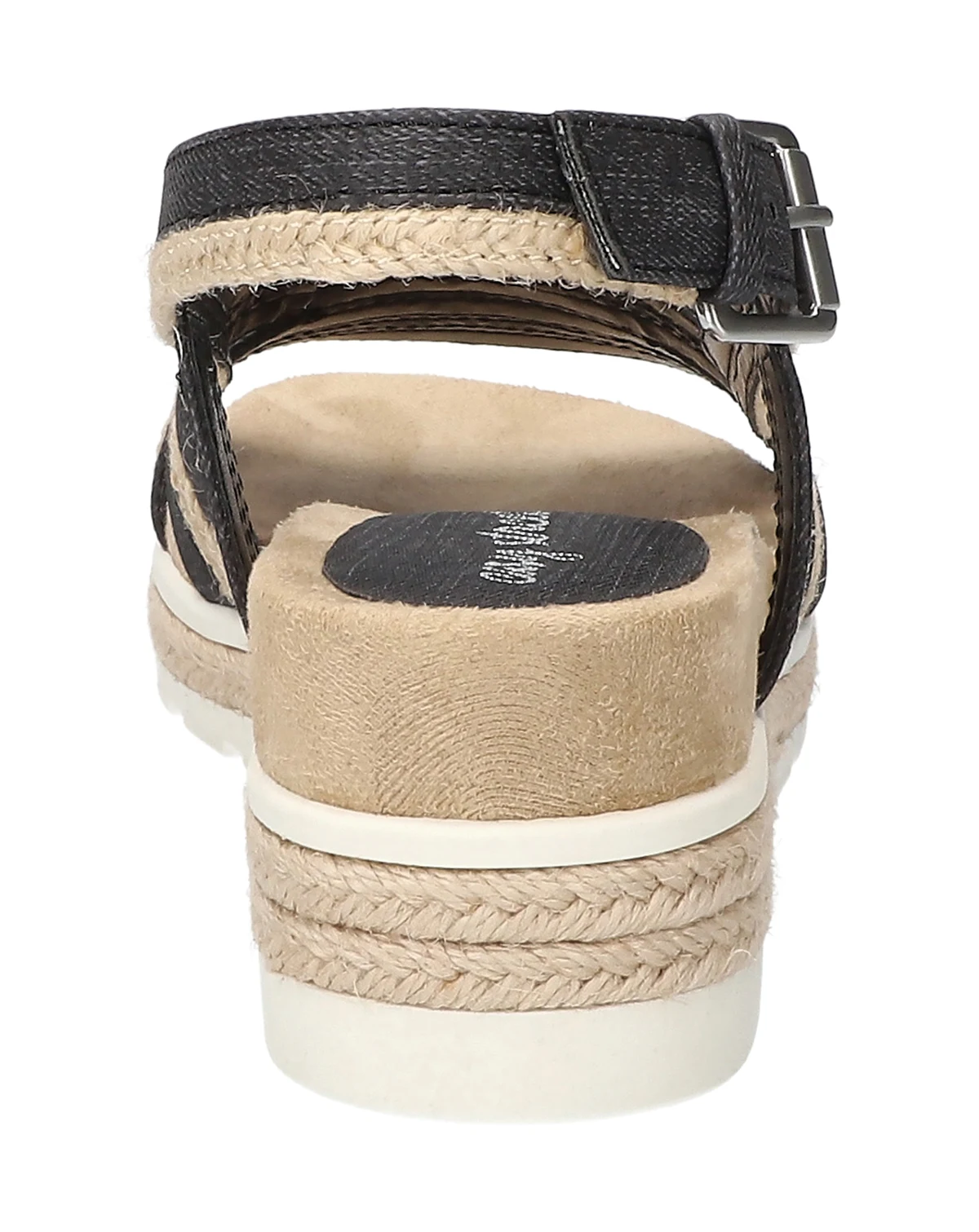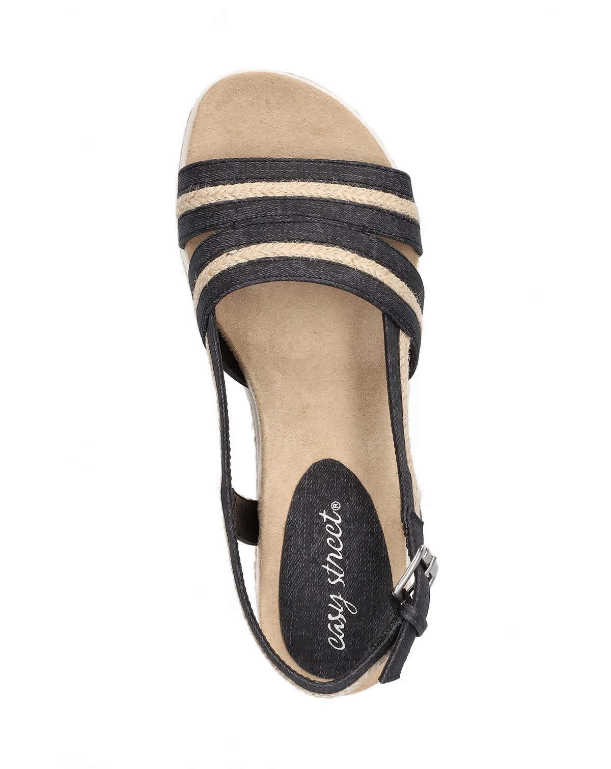 Look no further than the Mel by Easy Street for all your summer styling. This contemporary sandal features rope accent on both the sandal and low platform outsole. This multi-material sandal will give style to all your favorite casual outfits. The adjustable slingback allows for a custom fit and the padded insole provides comfort as you take on your spring and summer days.
