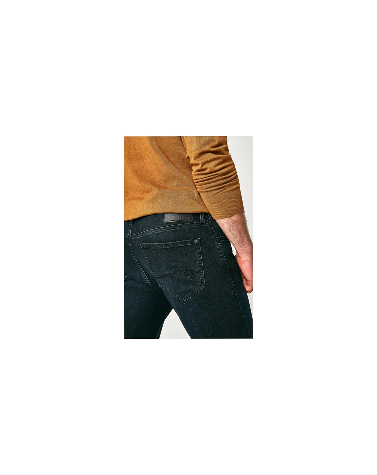 Machine washable; This pair comes in a sleek, dark blue-black wash.
