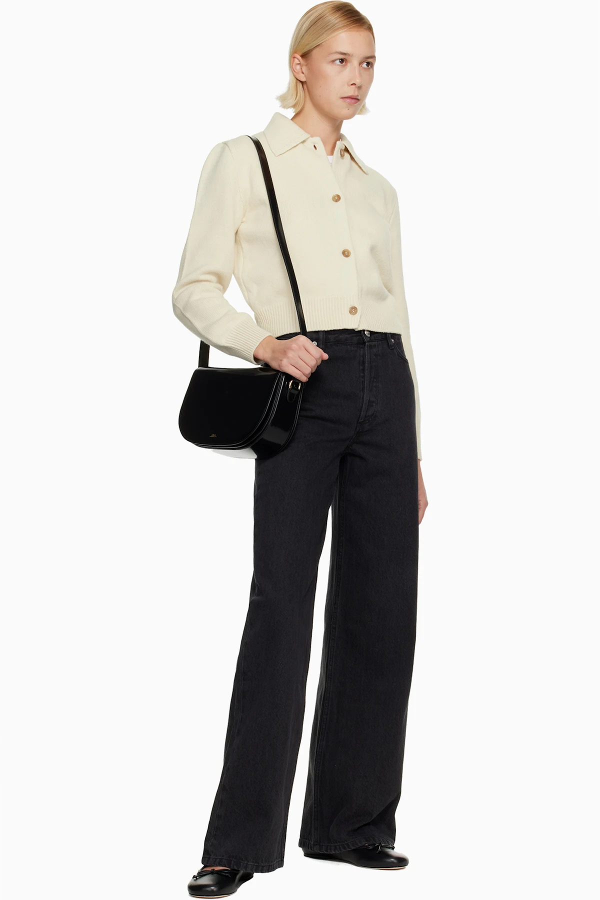 Polished leather shoulder bag.