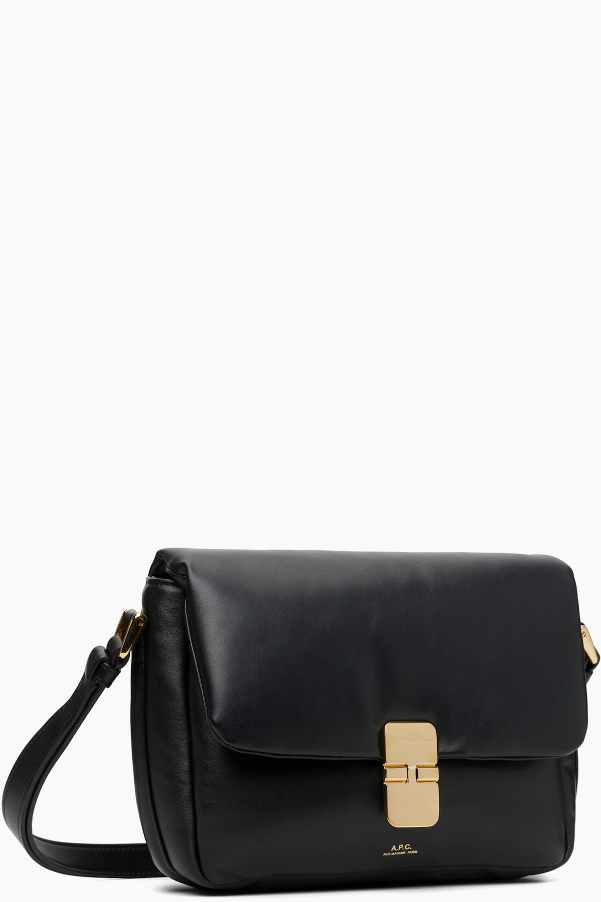 Padded buffed leather shoulder bag.