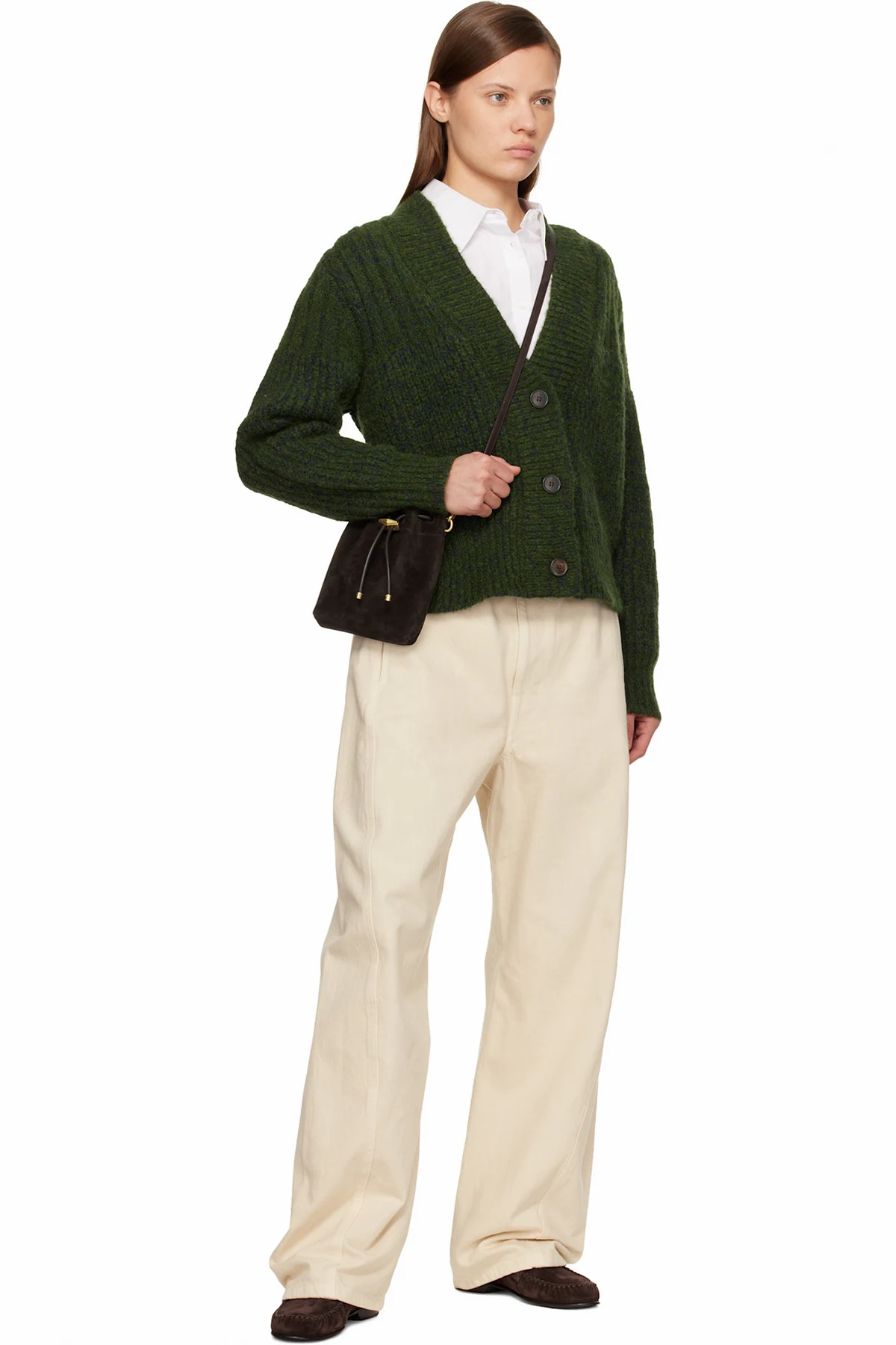 Calfskin suede shoulder bag.