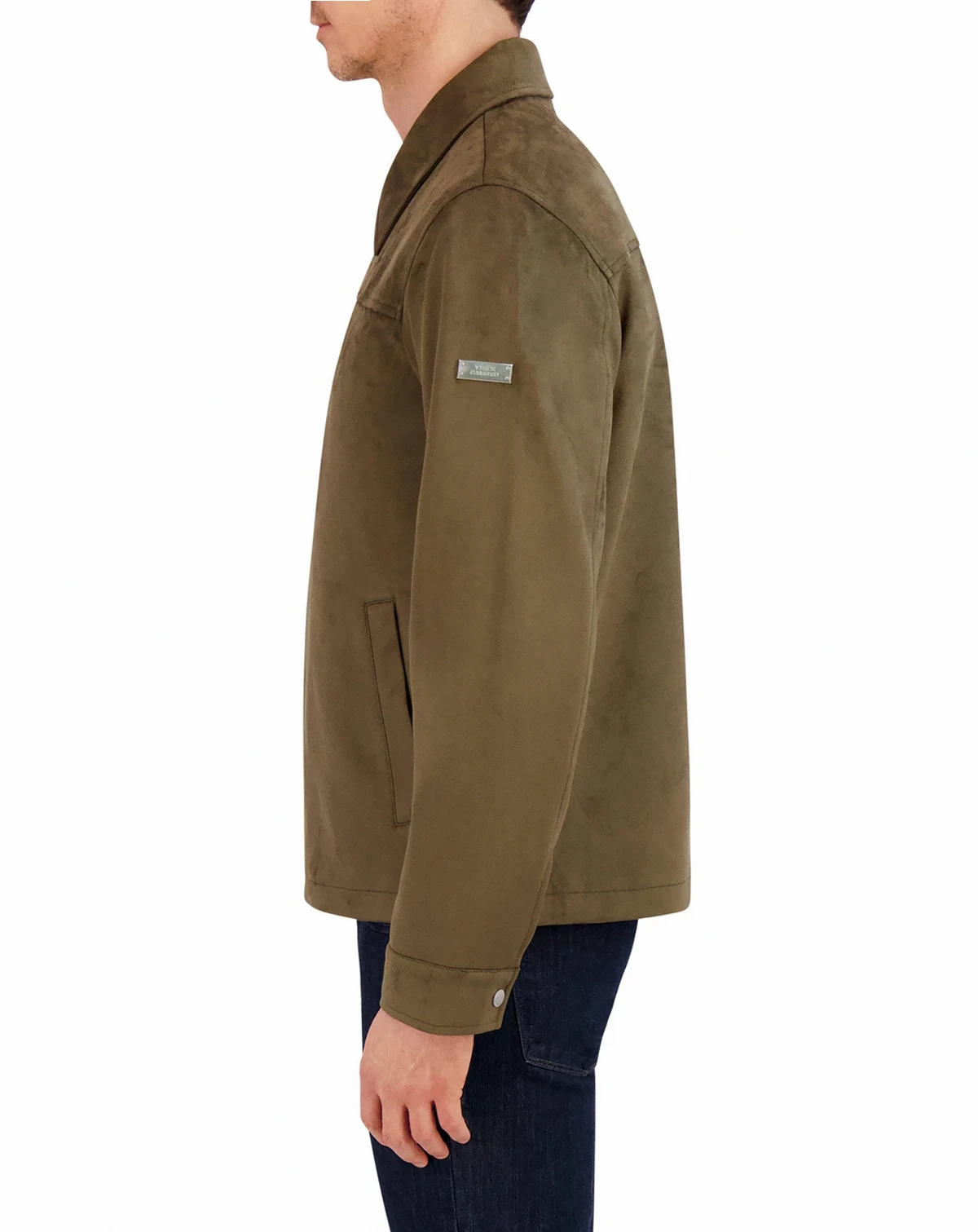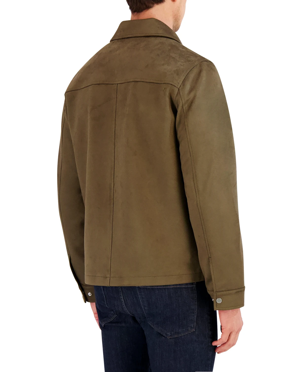 Shell: Coating: 100% Polyurethane/Fabric: 95% Polyester 5% Spandex || Lining: 100% Polyester; Elegantly Crafted Fabric: A soft suede finish provides a luxurious touch and sophisticated appearance, ensuring you command attention wherever you go.