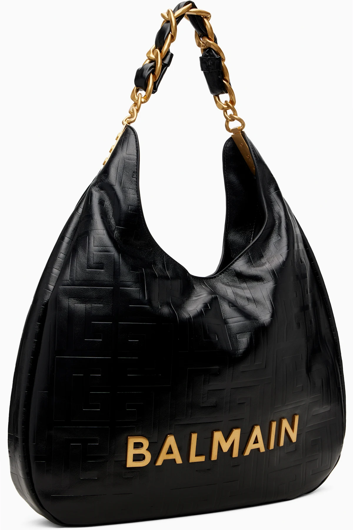 · Fixed calfskin and curb-chain shoulder strap