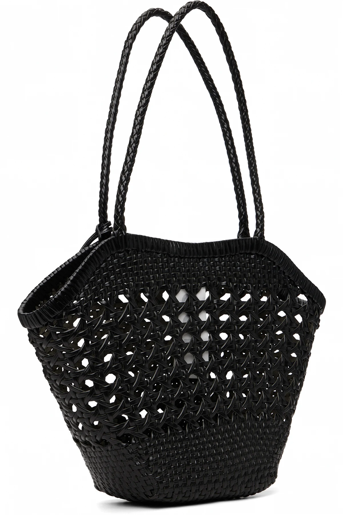 Basket-woven recycled leather shoulder bag.
