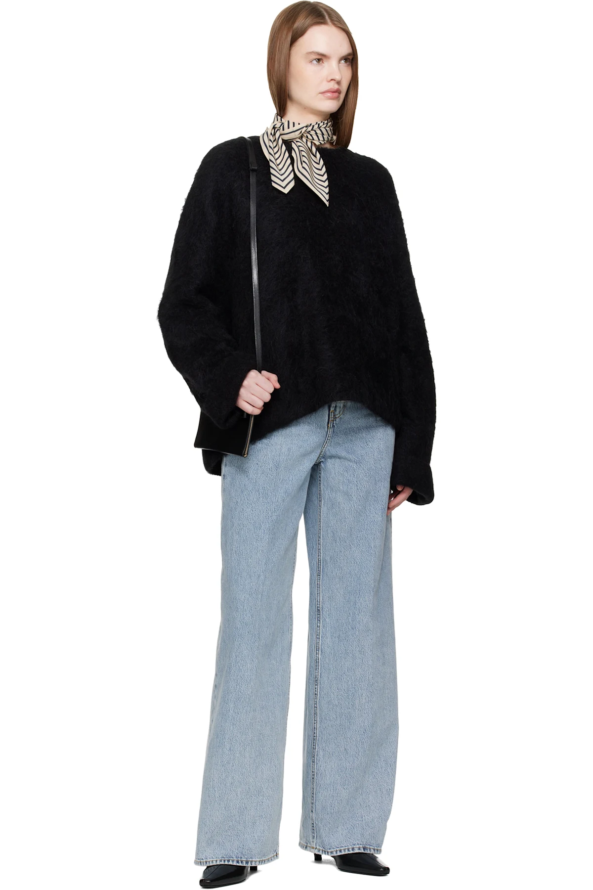 Black Belted Leather Crossbody Bag