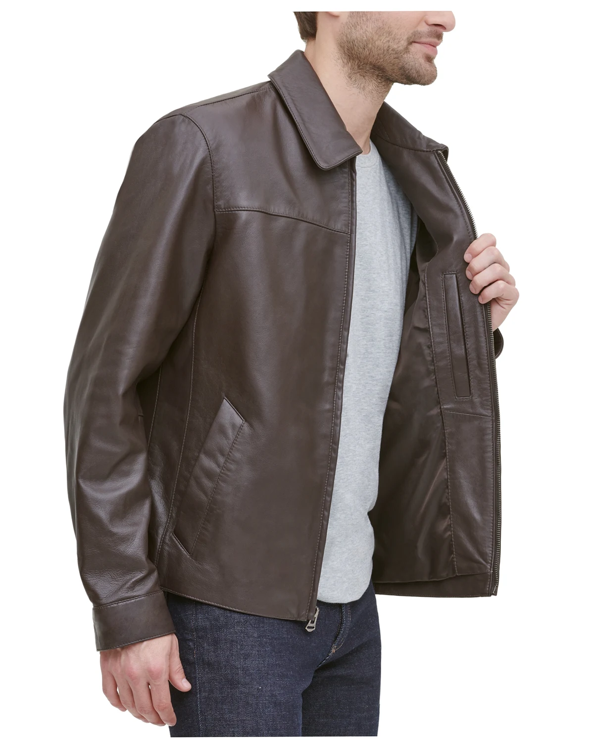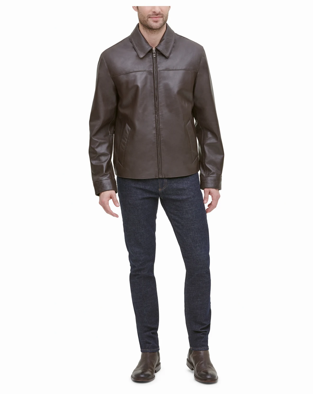 The classics never go out of style. Sleek with a crisp, clean front, Cole Haan's leather jacket adds a luxe element to every look.