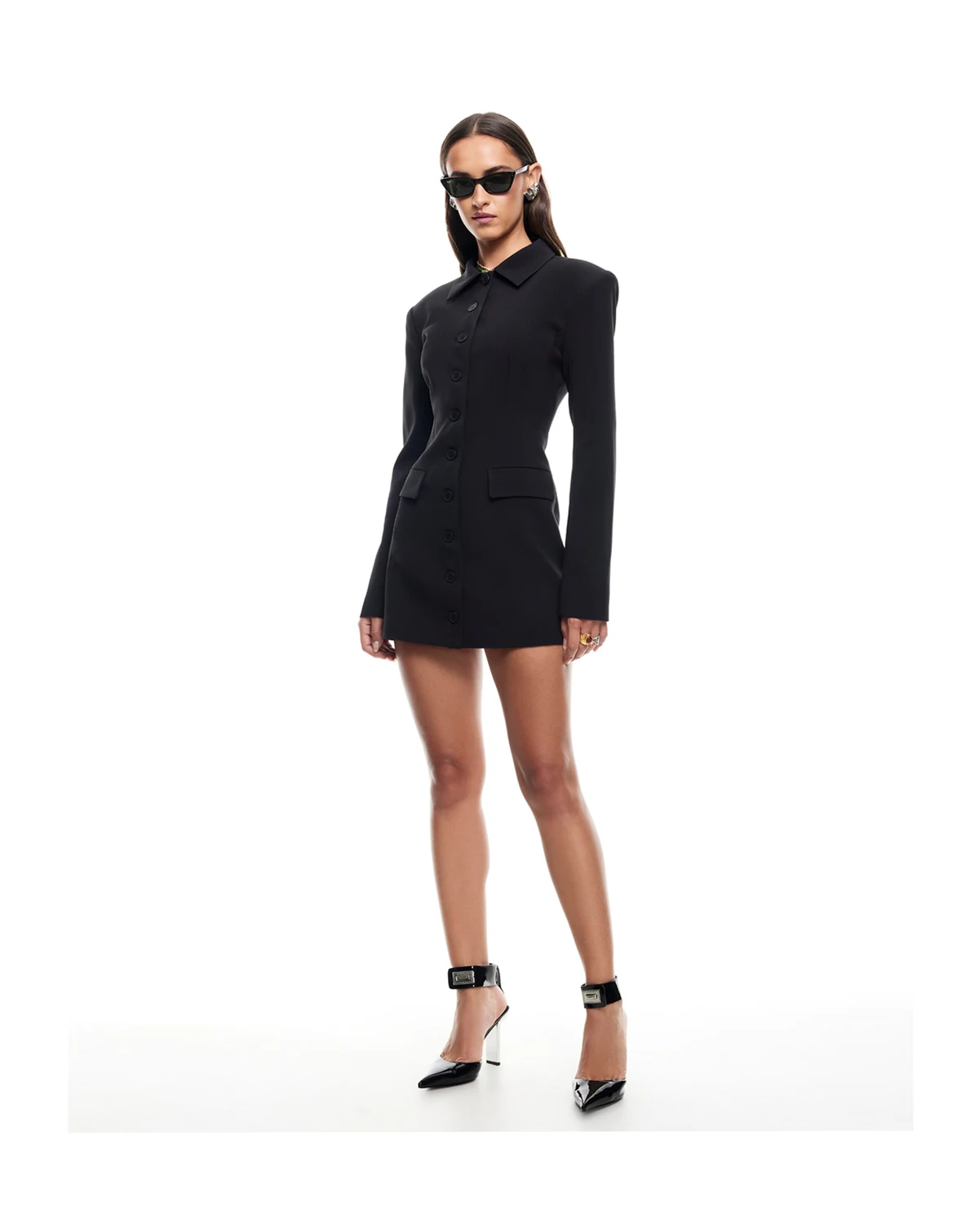 This button-front Cheri mini dress from Lioness offers a sleek and modern fit. The subtle stretch fabric provides all-day comfort, while the fully lined design ensures a polished look. It's the perfect dress to take you from a casual day out to a celebratory event.