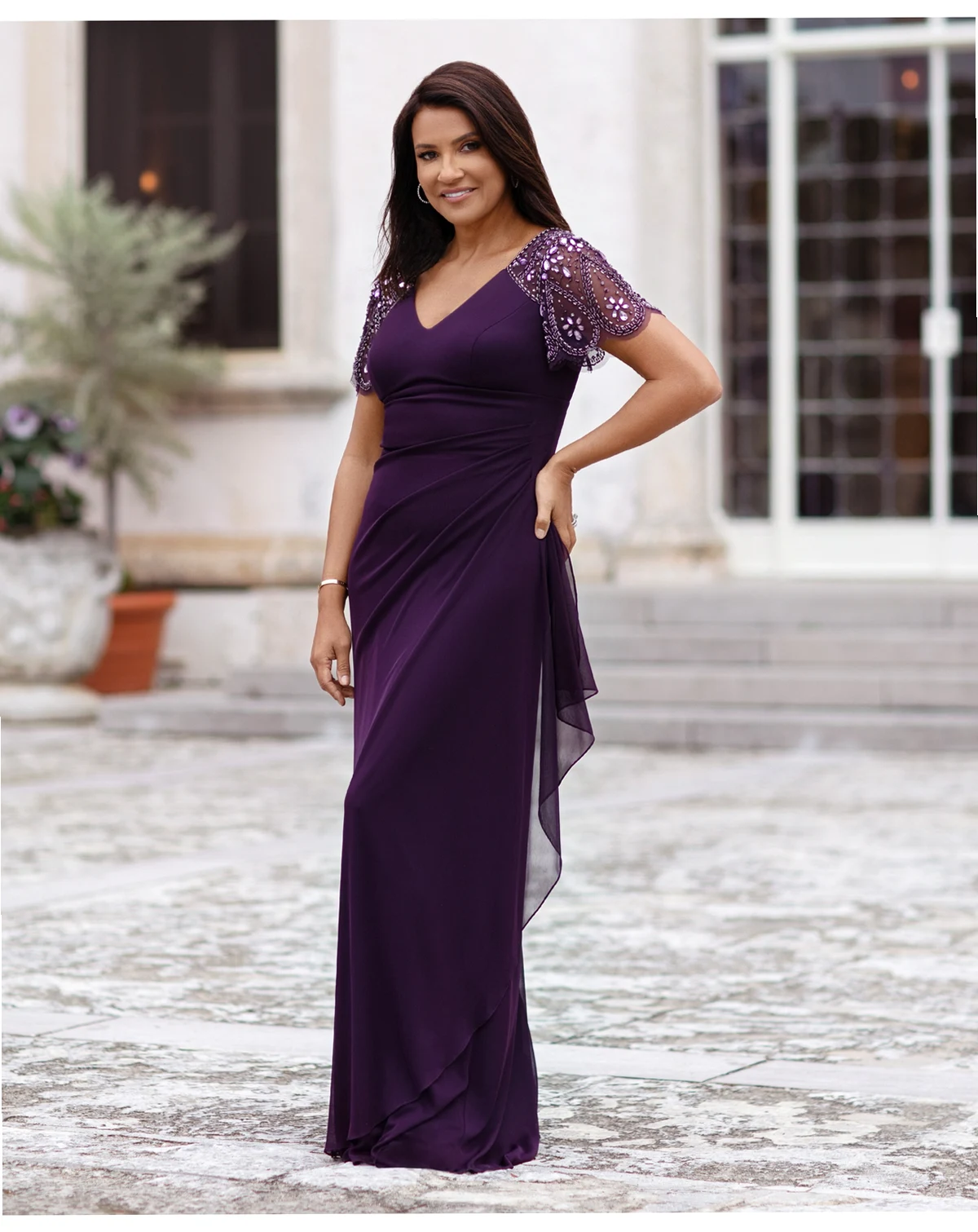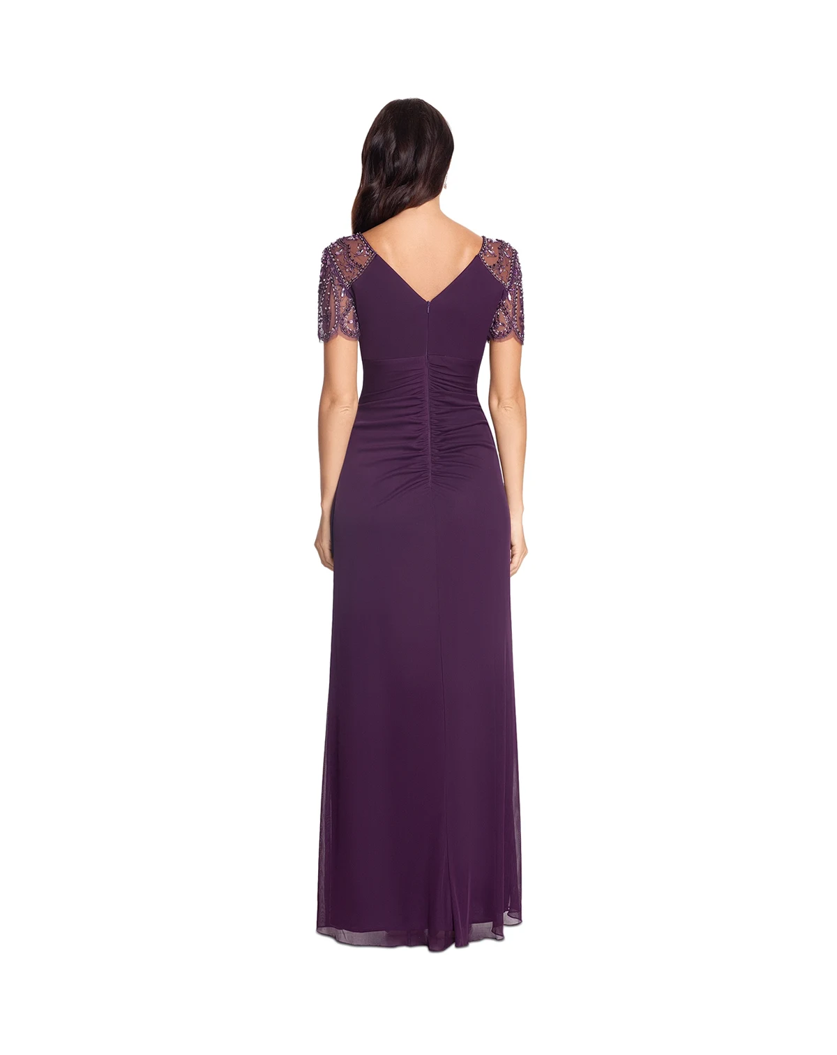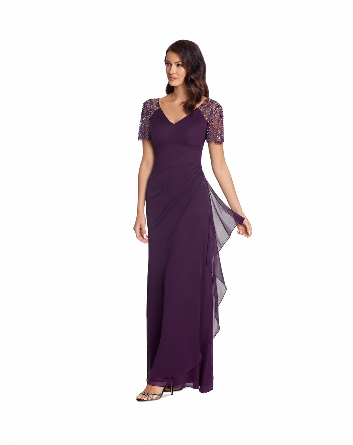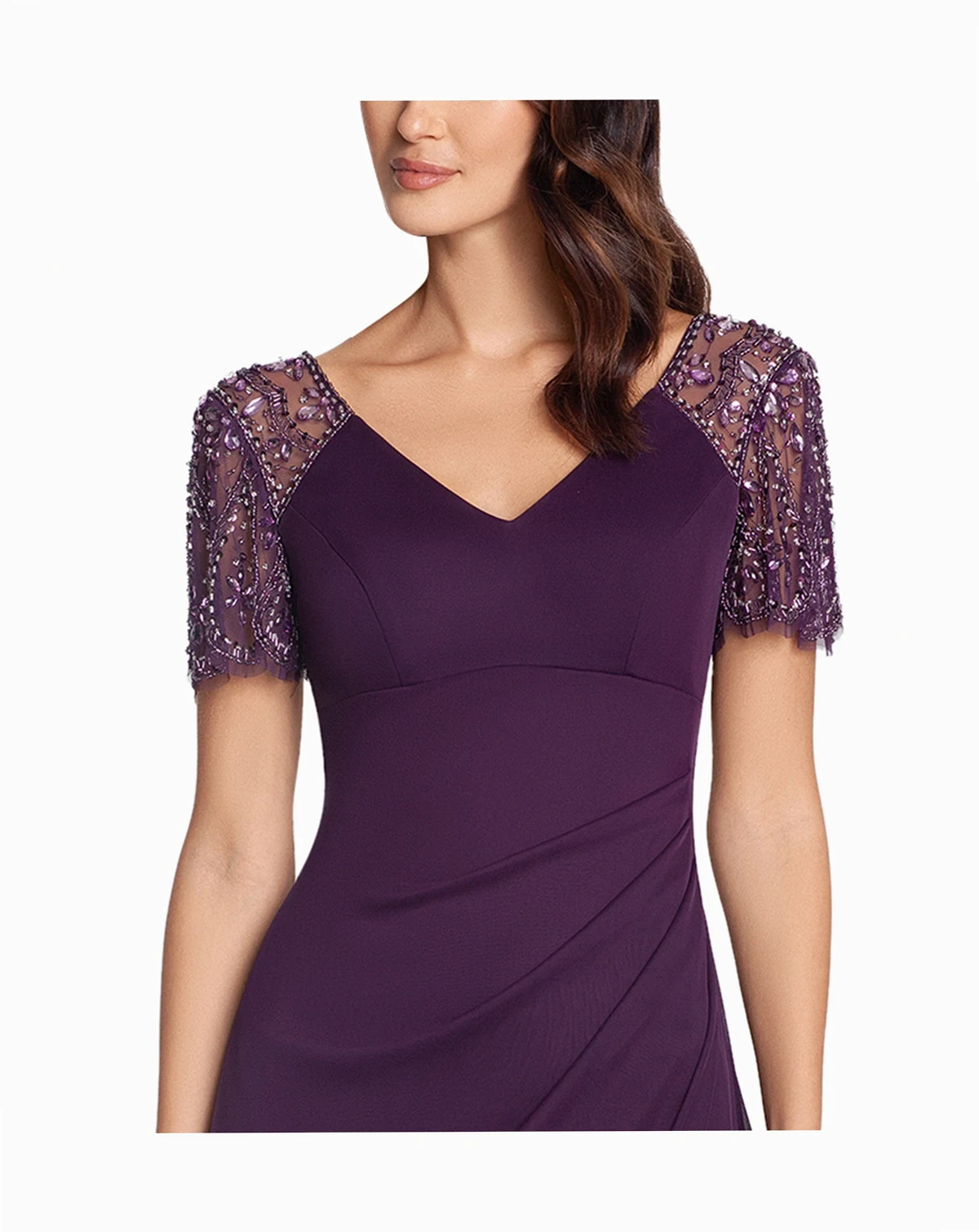Approx. model height is 5'10" and she is wearing a size 4; Approx. 61" long from center back neck to hem. Length is based on size 4 and varies 1/8" between sizes; Runs small; if between sizes, order one size up