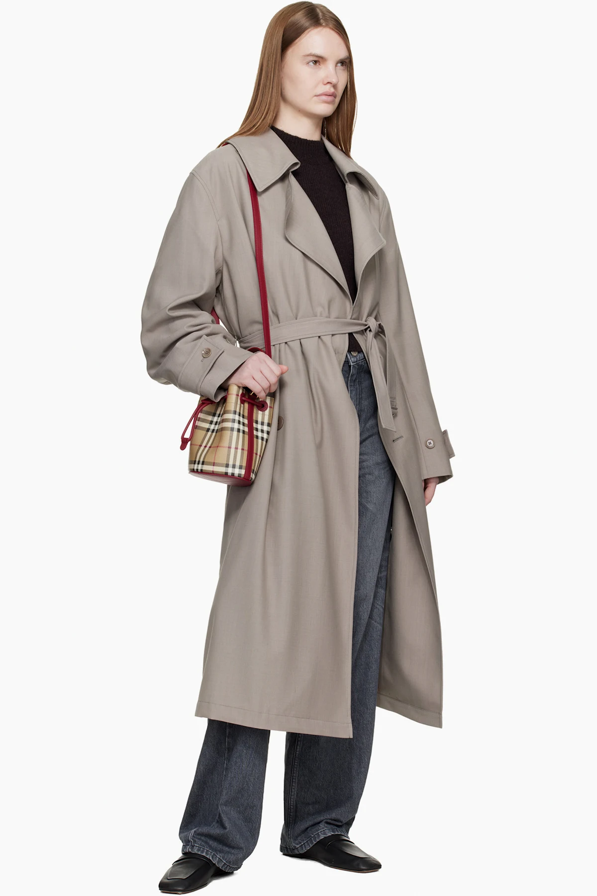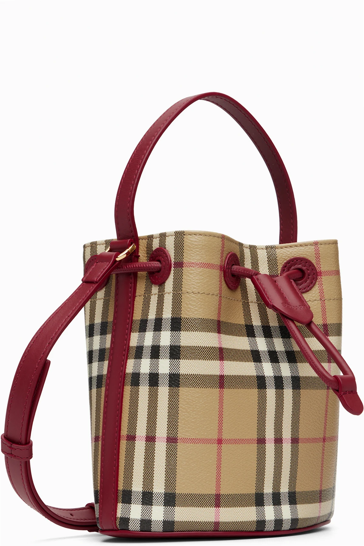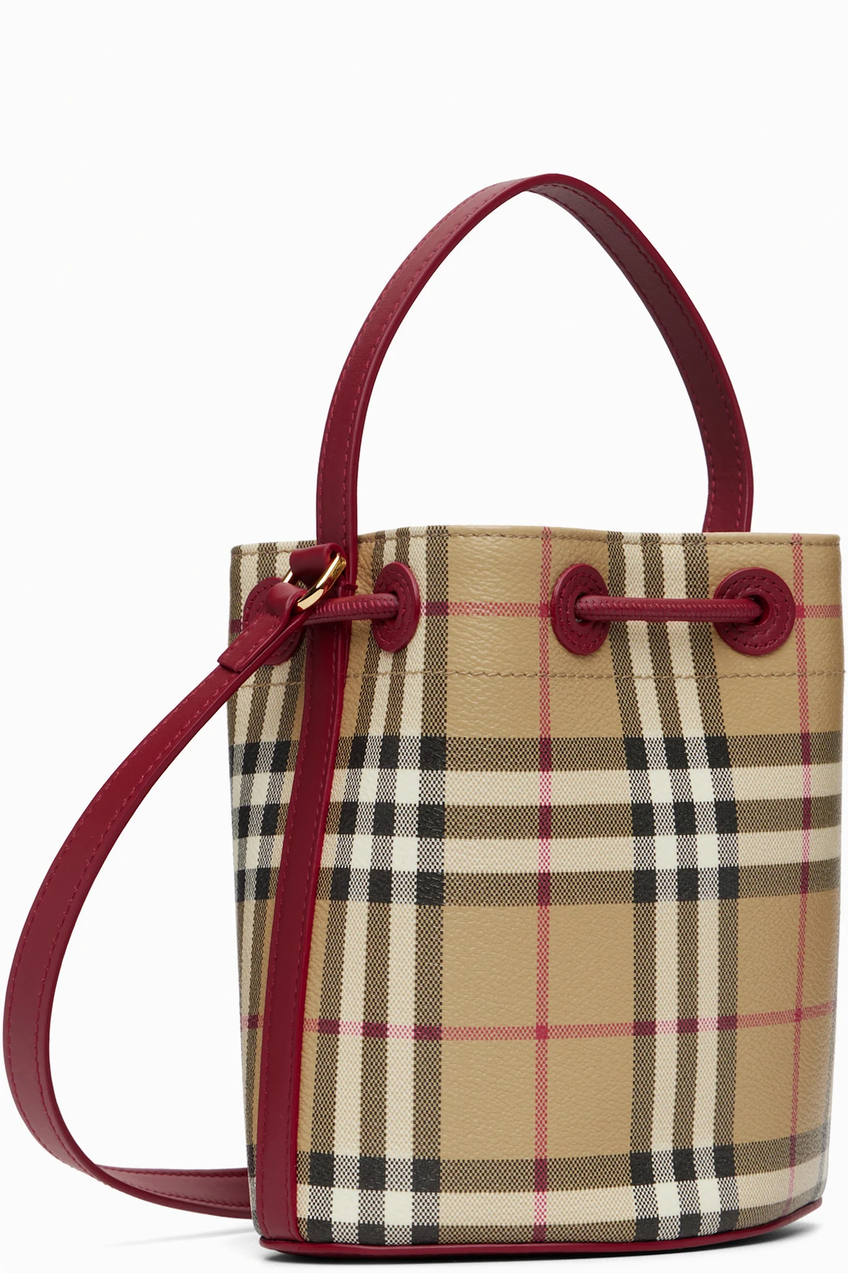 Beige & Red Mini Check Bucket Bag