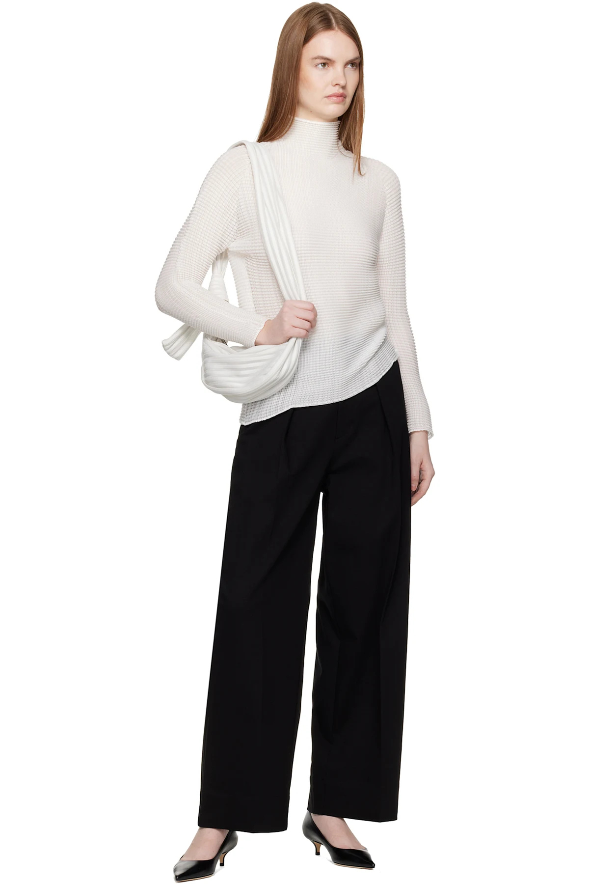 Rib-knit shoulder bag.