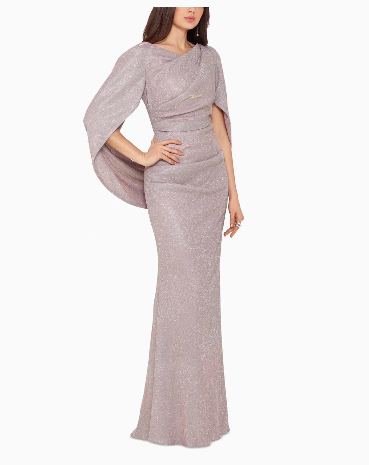 Polyester/metallic fibers; lining: polyester; IMPORTANT NOTE: This item arrives with a return tag attached and instructions for removal. Once the tag is removed from the dress, this item cannot be returned.
