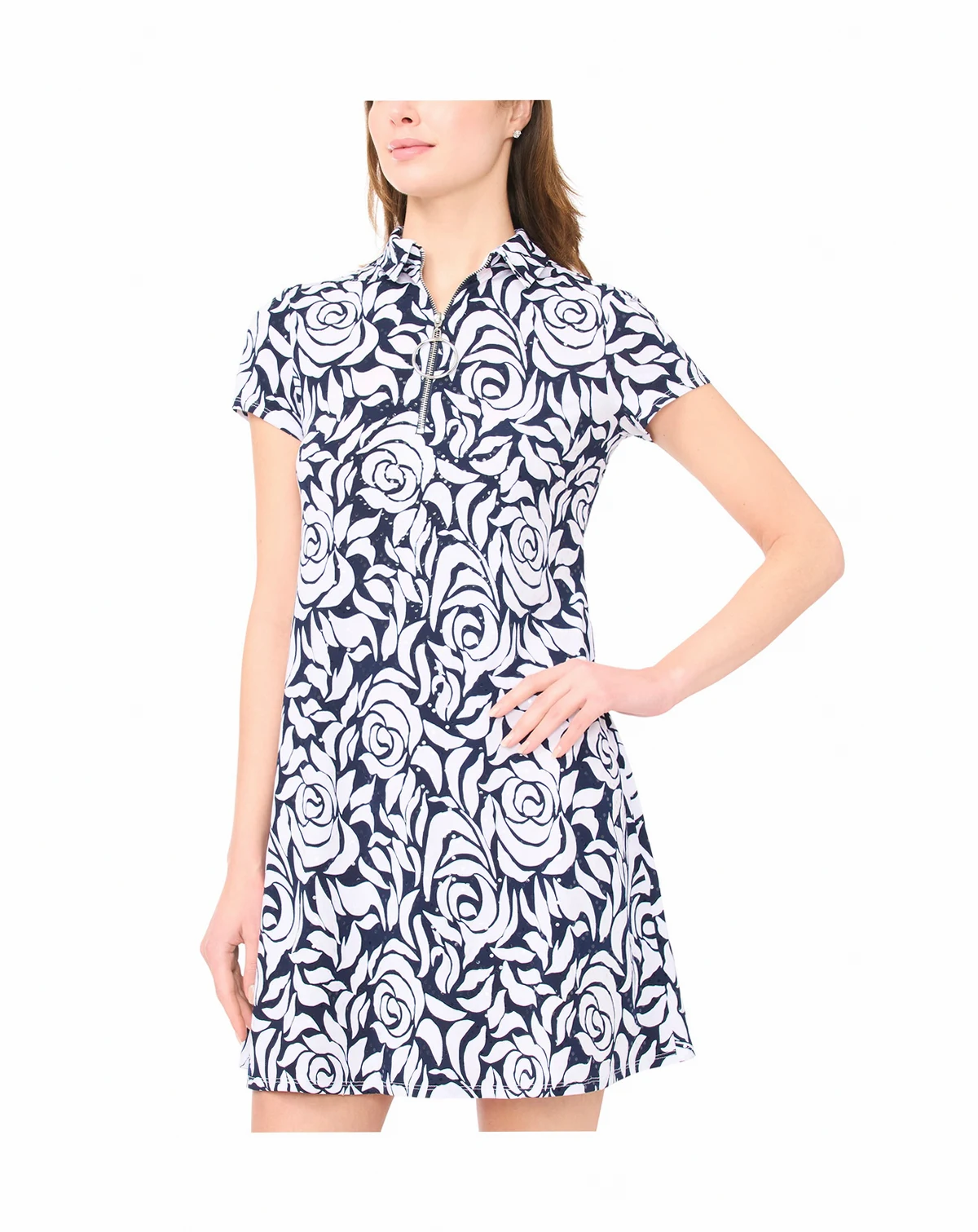 Add subtle sparkle to polished looks in this MSK dress featuring a collared neckline, short sleeves, and a beaded zip-front design. Fitted through the chest and arms before easing through the waist and hips, it offers versatile wear for work or church occasions.
