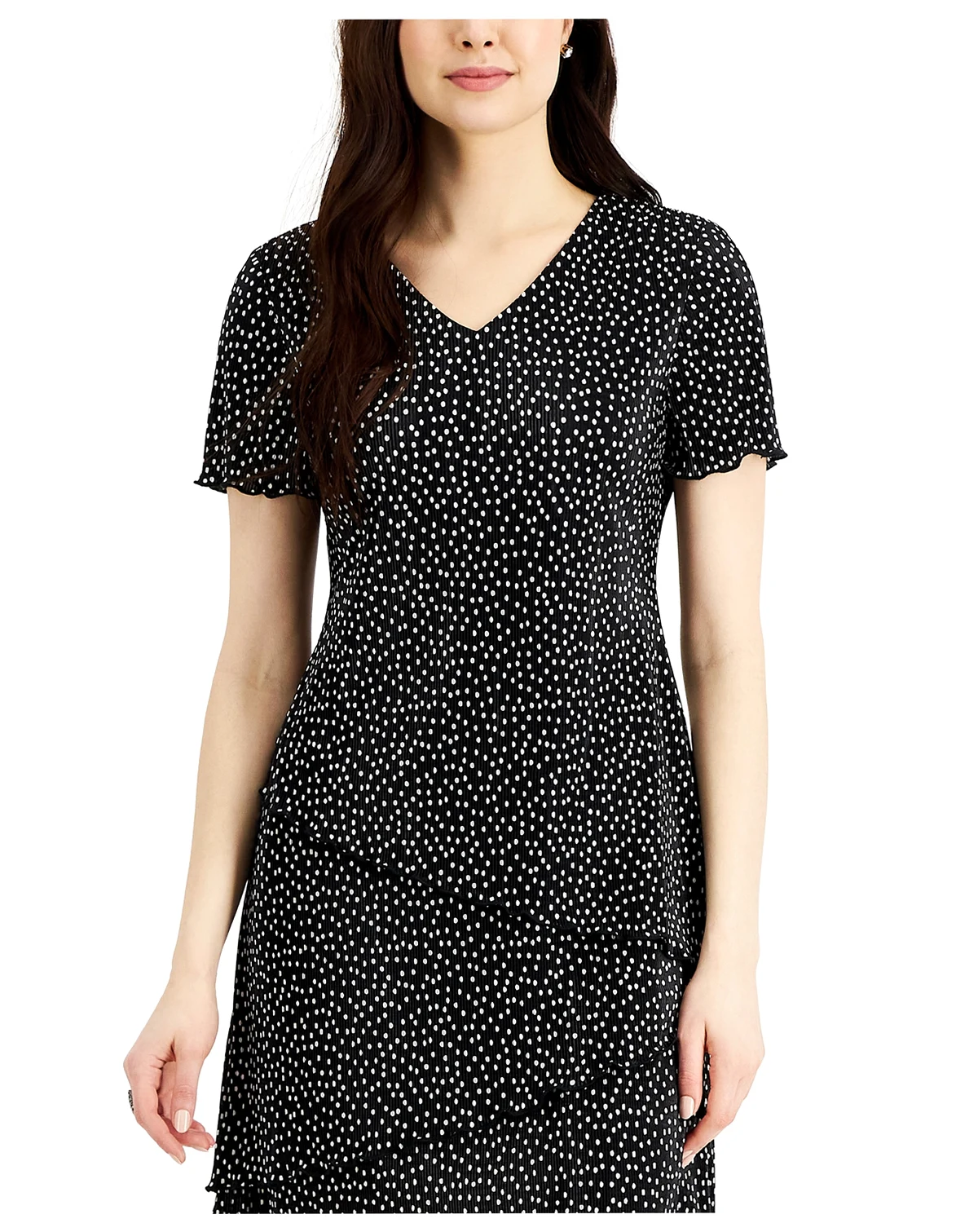 Approx. 36-1/2" long from center back neck to hem. Length is based on size 6P and varies 1/4" between sizes; Fit & Flare: Fitted through the chest and waist; flared and flowing skirt; Designed to fit and flatter 5'4" and under frame