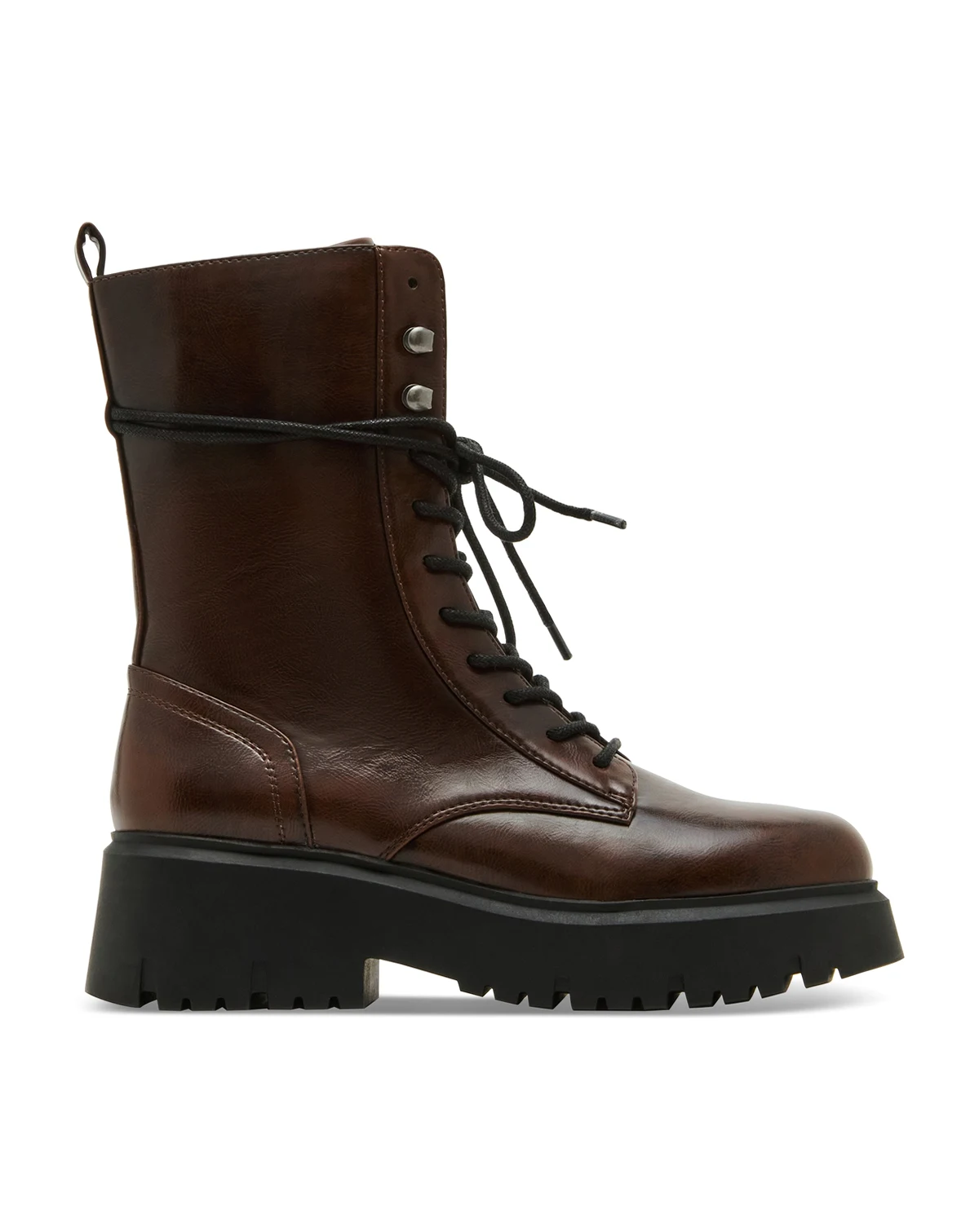 Bold on platform heels, the Madden Girl Maisey combat booties ground any look with moto appeal laced in stylish attitude.