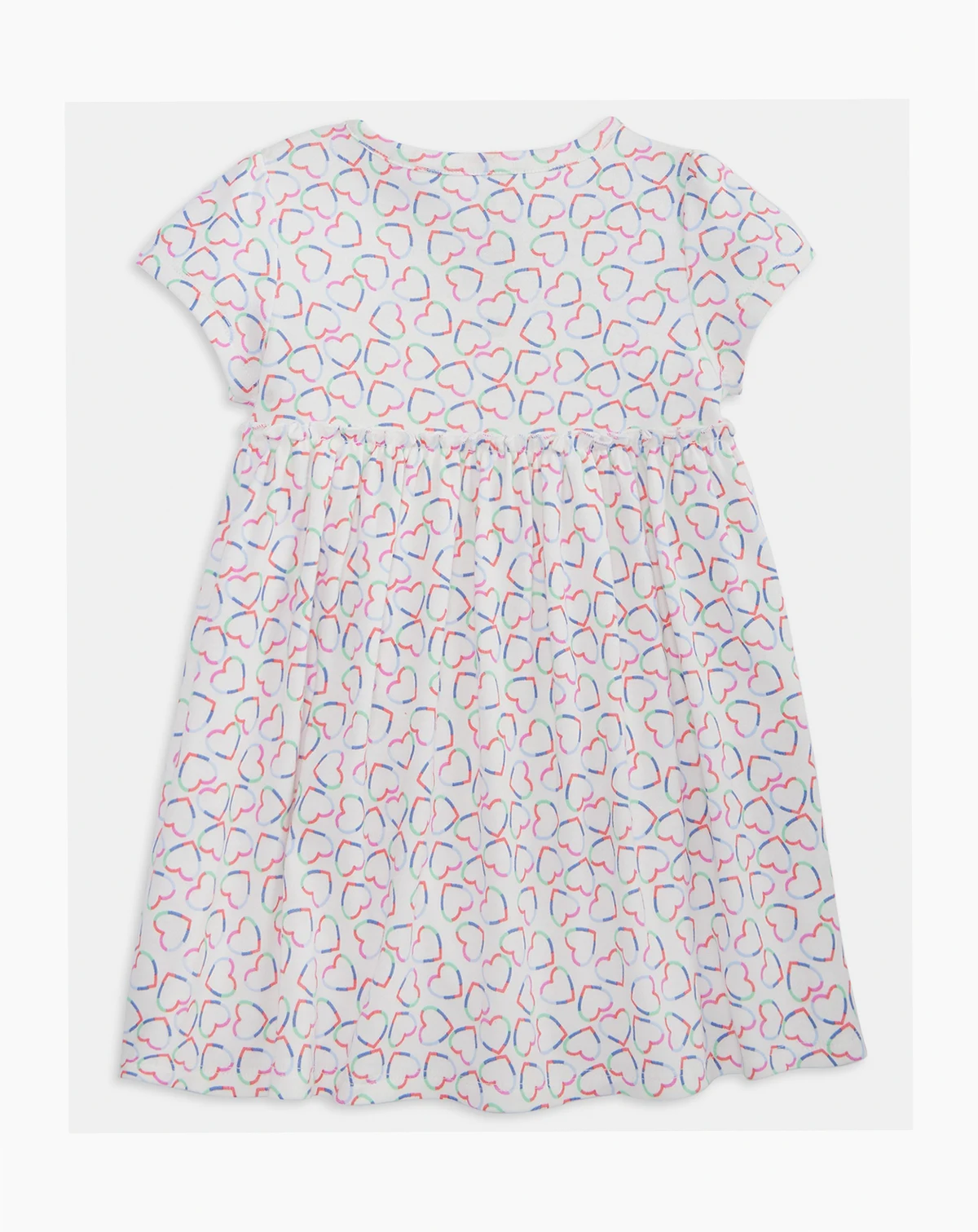Let her showcase a sweet style in this First Impressions pull-on linear hearts printed dress, adorned with a charming pattern. Short sleeves and a crewneck offer a timeless and easy-to-wear design for little ones.