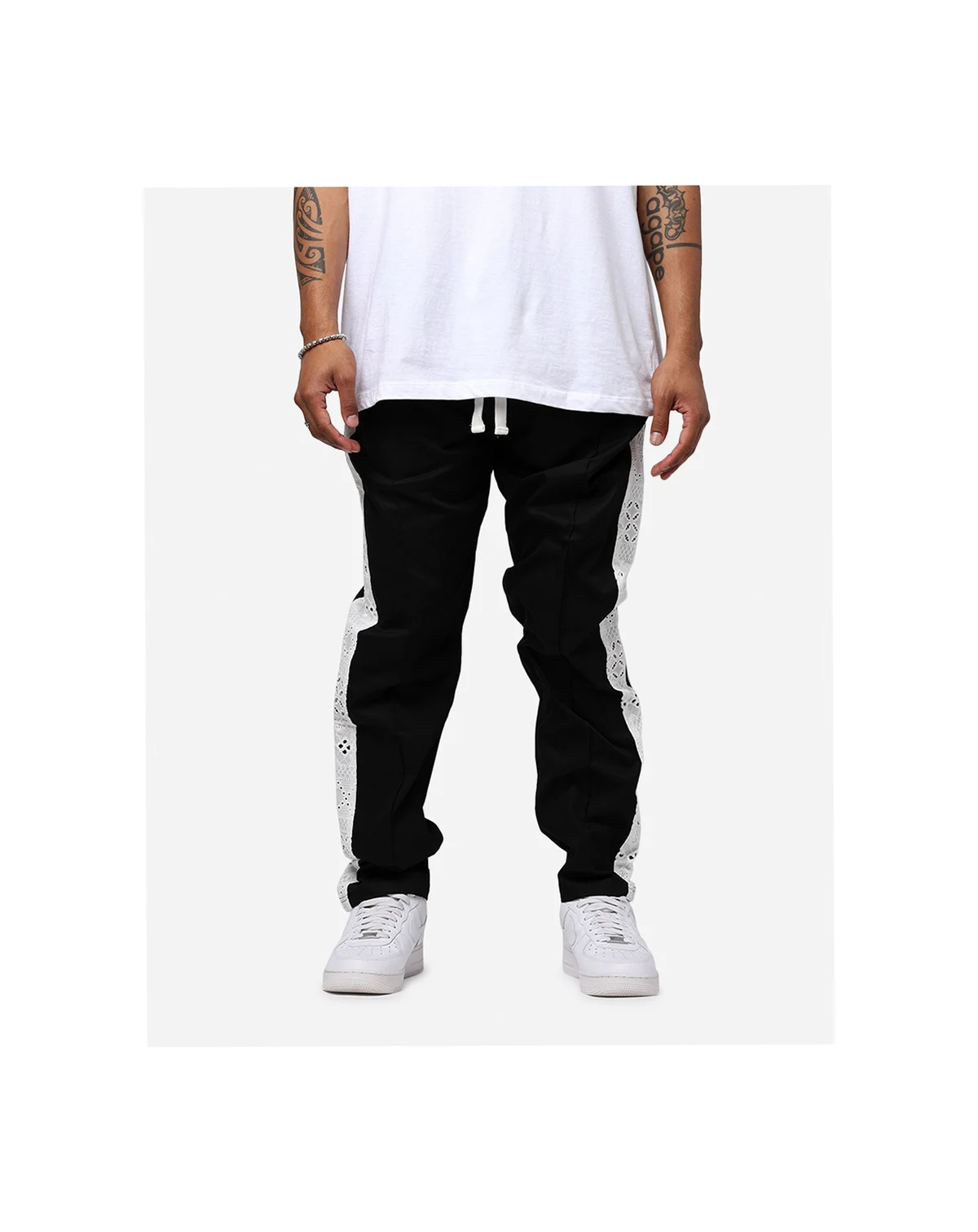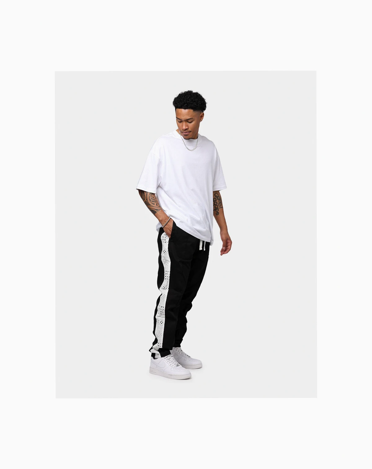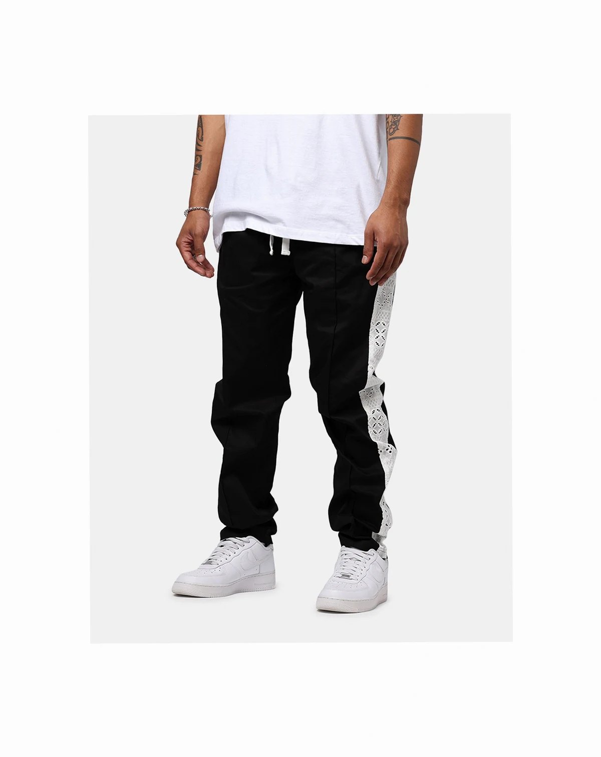Introducing the Bandana Lace Pants, a streetwear essential that effortlessly combines fashion and function. Fire lace details add a touch of boldness. The elasticized waist with a tonal adjustable drawstring ensures a tailored fit, while rugged twin-needle stitching guarantees durability.