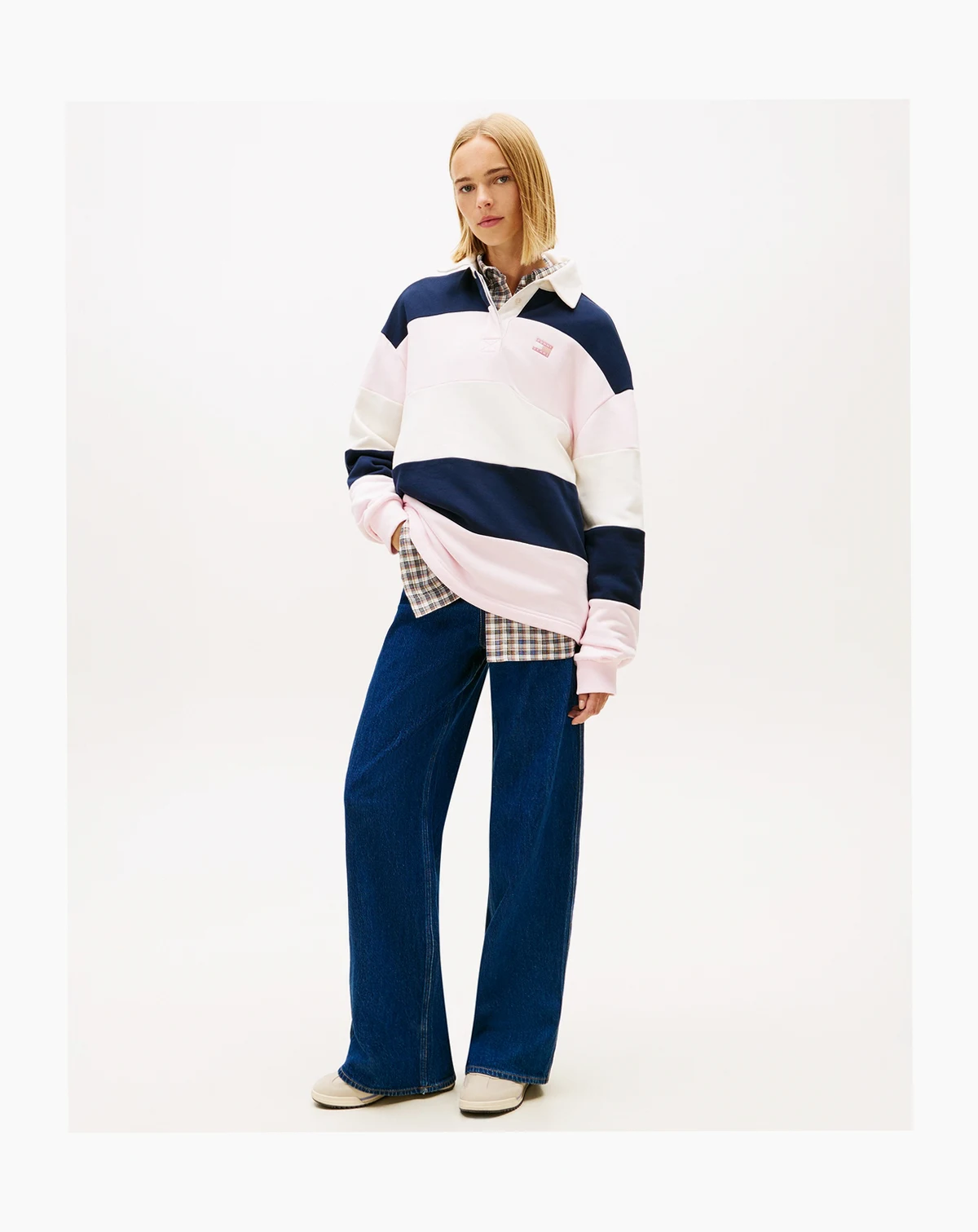 A high-rise wide leg silhouette gives these Tommy Jeans a bold, fashion-forward profile. The classic five-pocket design maintains an authentic denim look with modern flair.