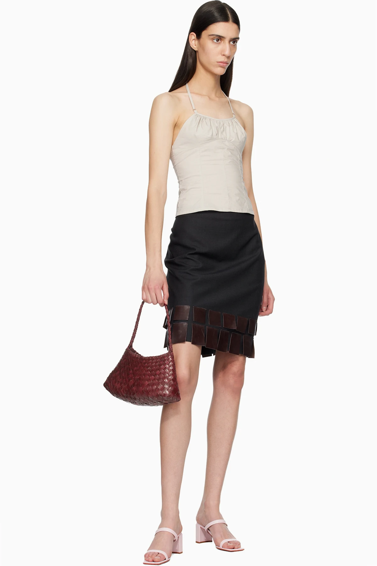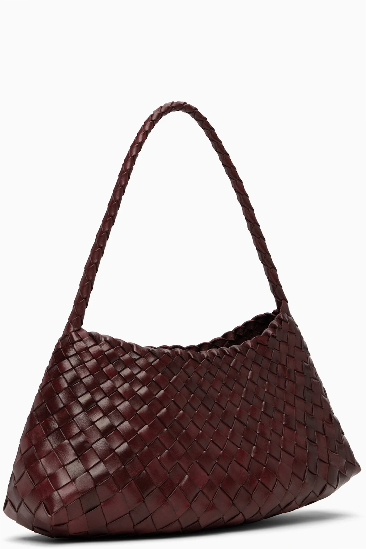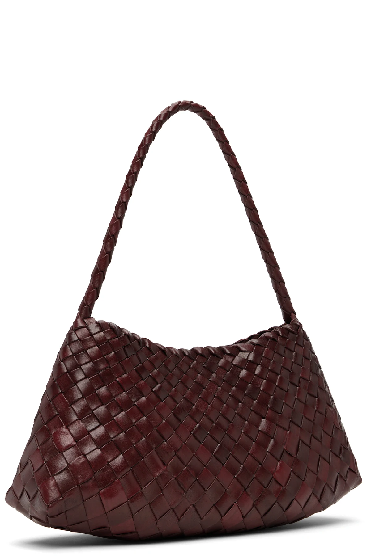 Handcrafted basket-woven buffalo leather shoulder bag.