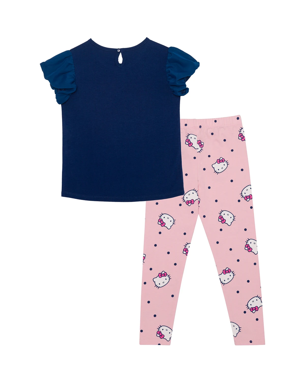 Look adorable in this soft jersey short sleeve top and legging set featuring a graphic design of Hello Kitty.