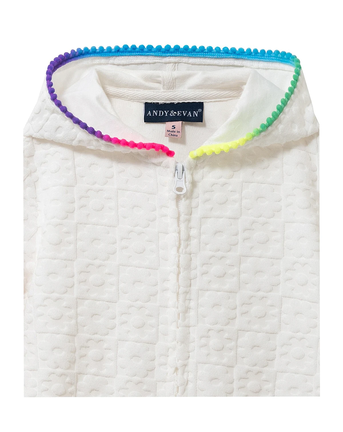 Brighten her swim days with this Andy & Evan cover-up, featuring a convenient front zipper and playful hood. Lightweight and easy to wear, the floral print adds cheerful style while providing comfortable coverage from poolside to beach adventures.