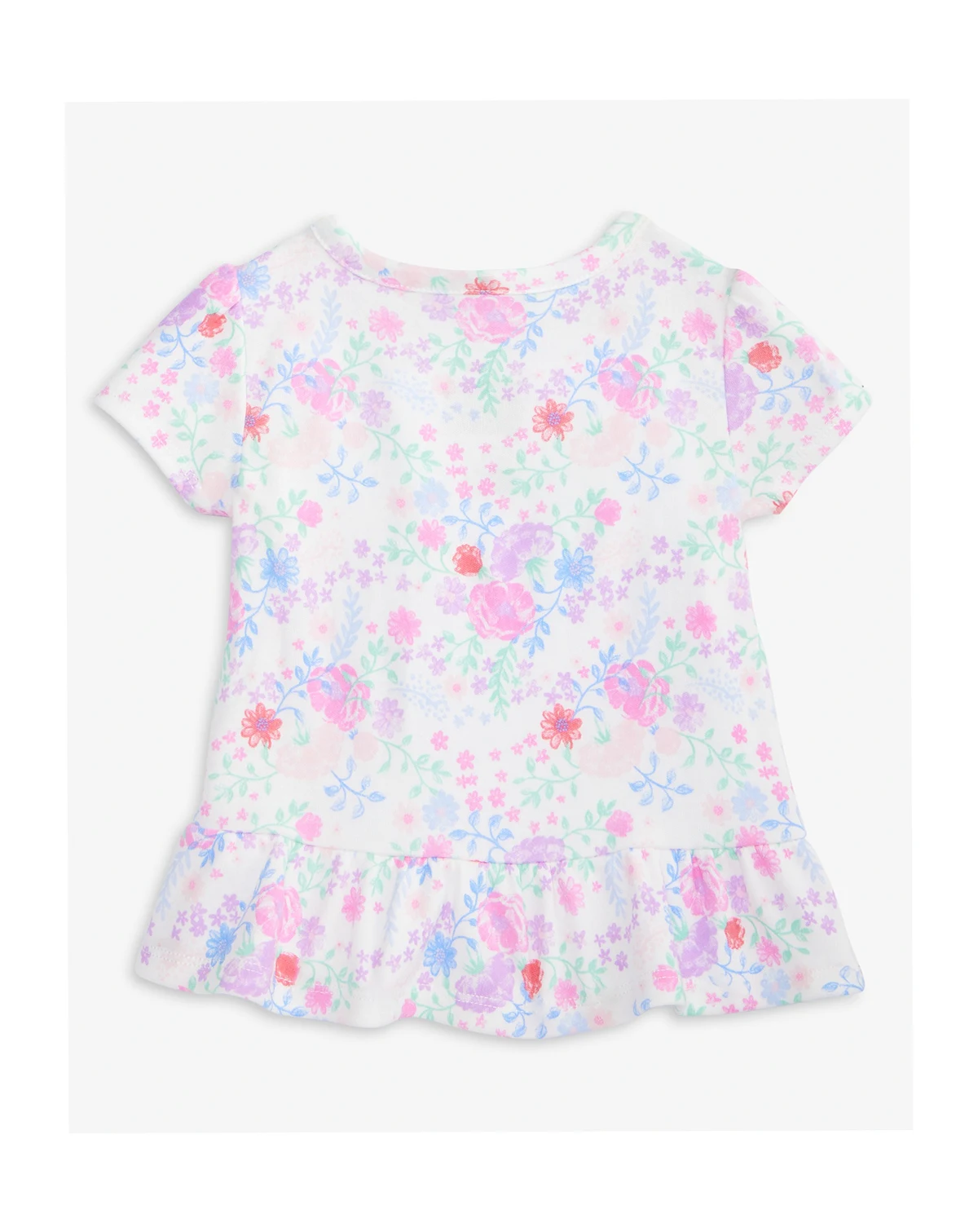Let your little girl embrace the rustic charm by wearing this top by First Impressions, featuring a country floral print and short sleeves. The crewneck and pull-on style provide easy, casual wear.