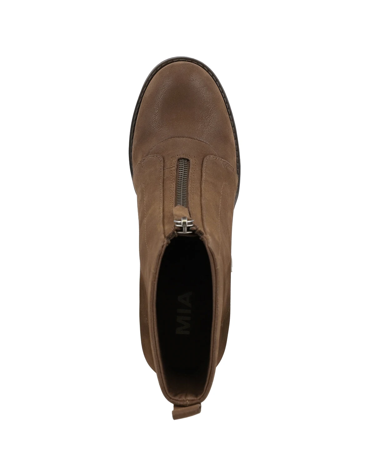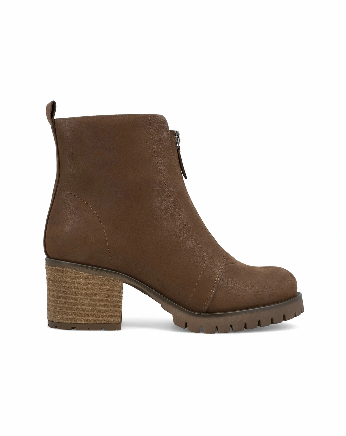 You're about to love boot weather with Fabiola—a playful bootie that brings confidence and sass to every step. Crafted from faux leather, she features a convenient front zipper and a comfortable heel. With a warm brown sole, Fabiola effortlessly combines cozy charm and chic appeal for all your fall adventures.