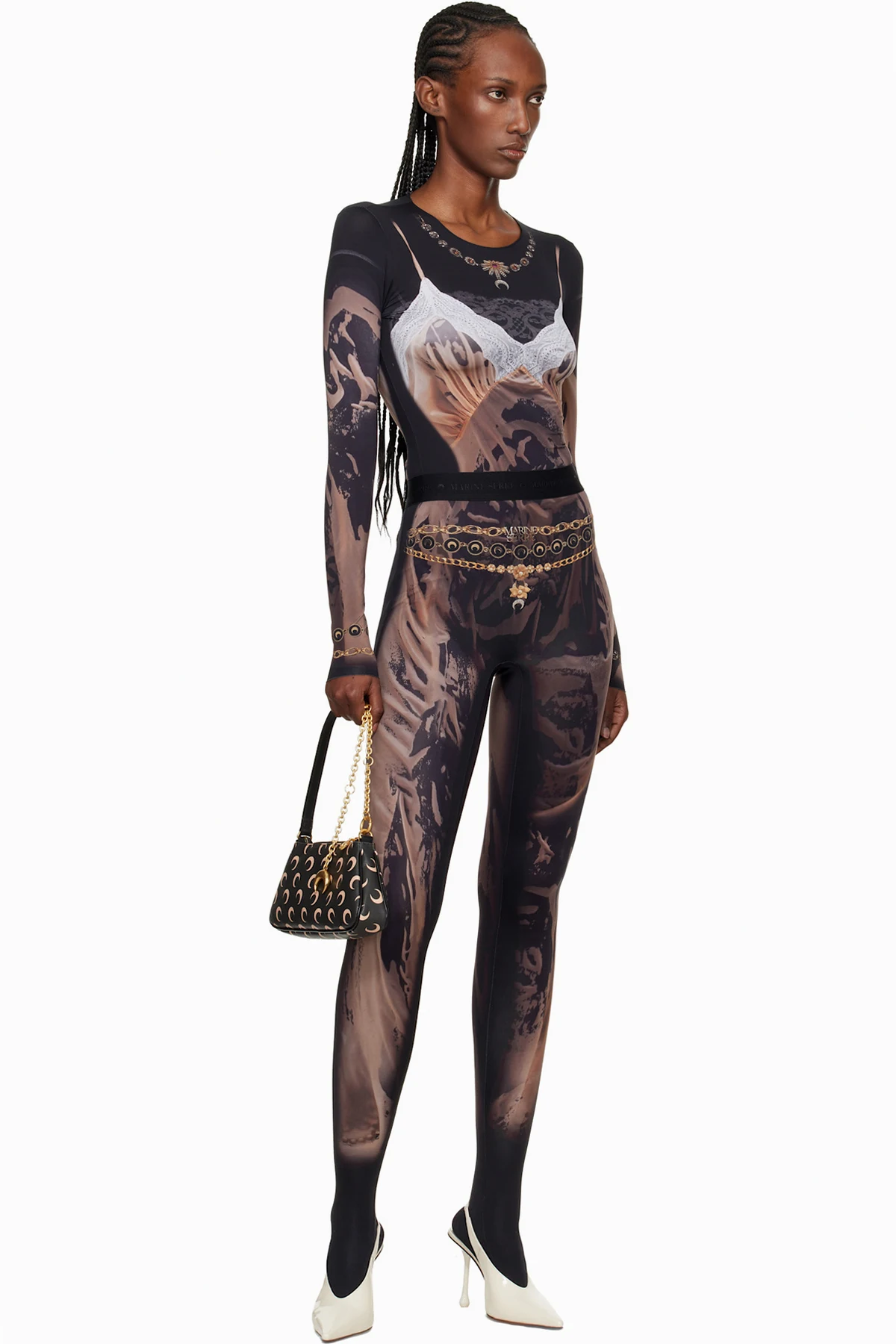 graphic-print chain-strap shoulder bag