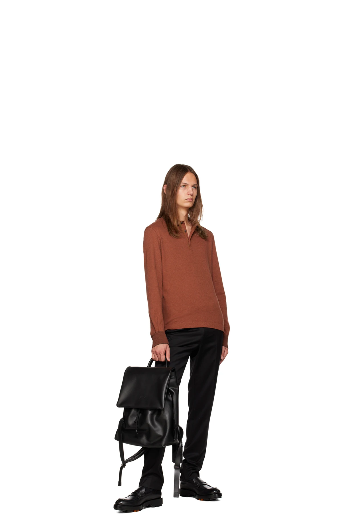 Grained leather backpack in black.