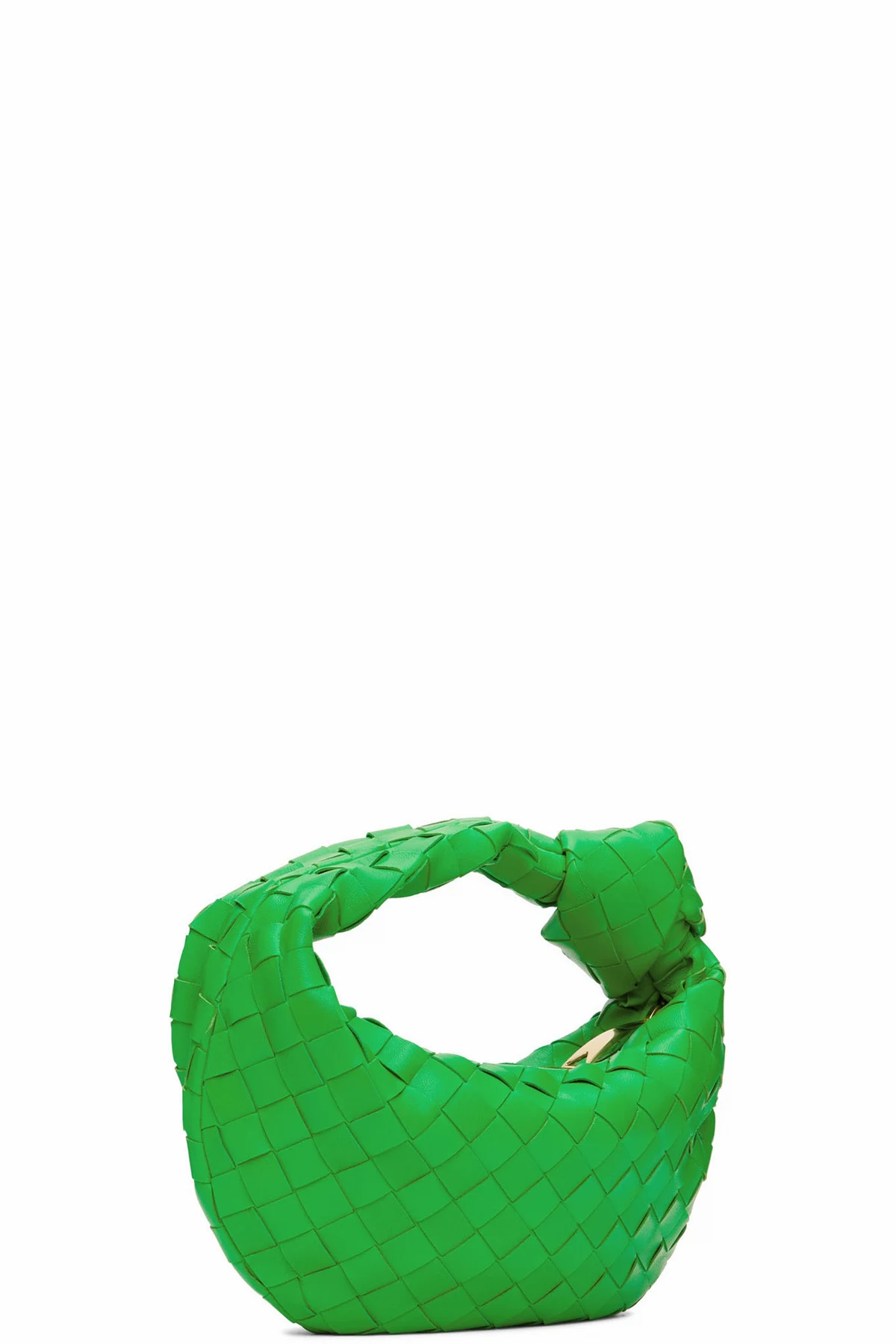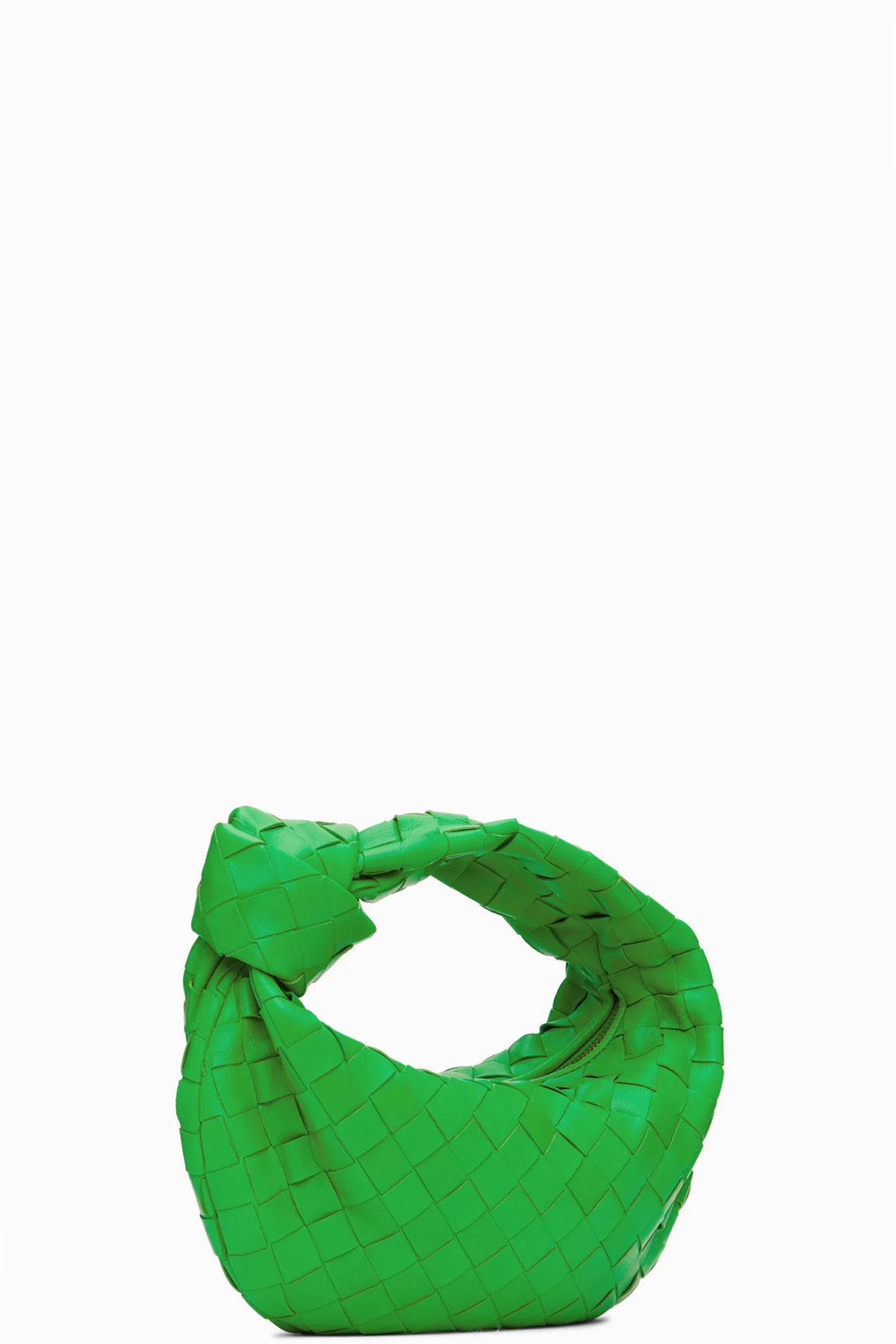 Intrecciato-woven buffed lambskin and calfskin top handle bag in green.