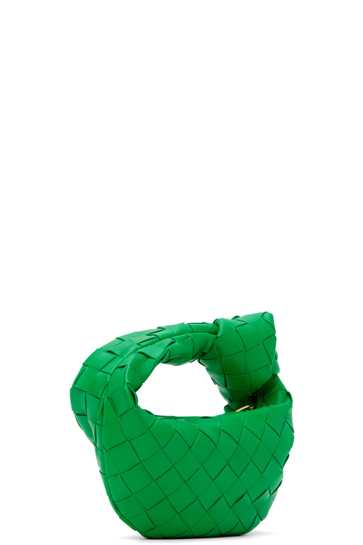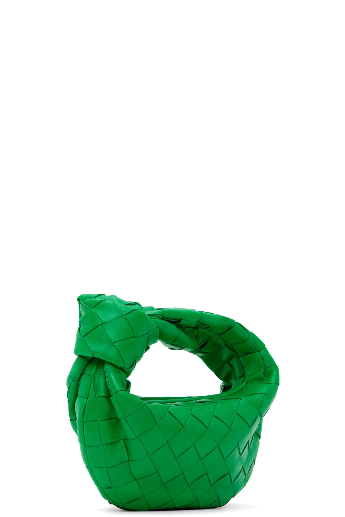 Intrecciato-woven grained lambskin top handle bag in green.