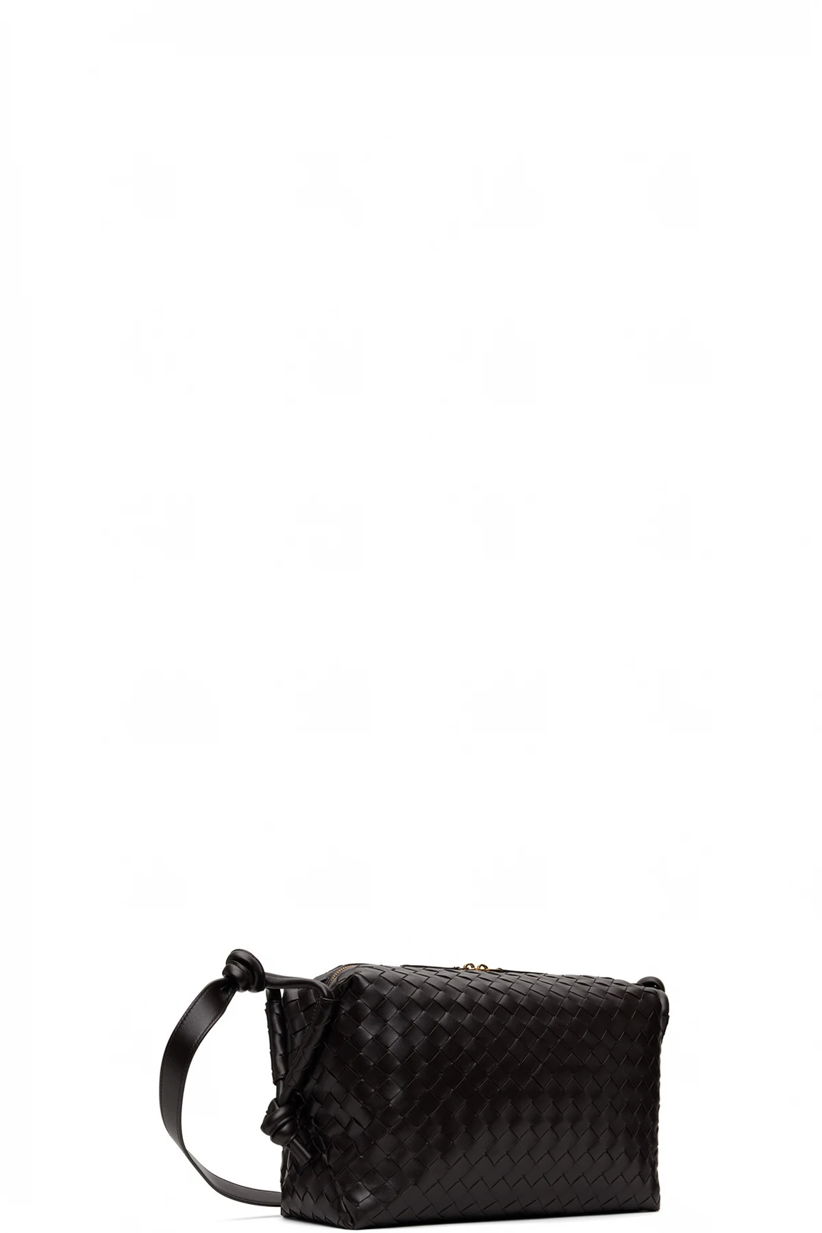 Intrecciato-woven buffed calfskin duffle bag in brown.