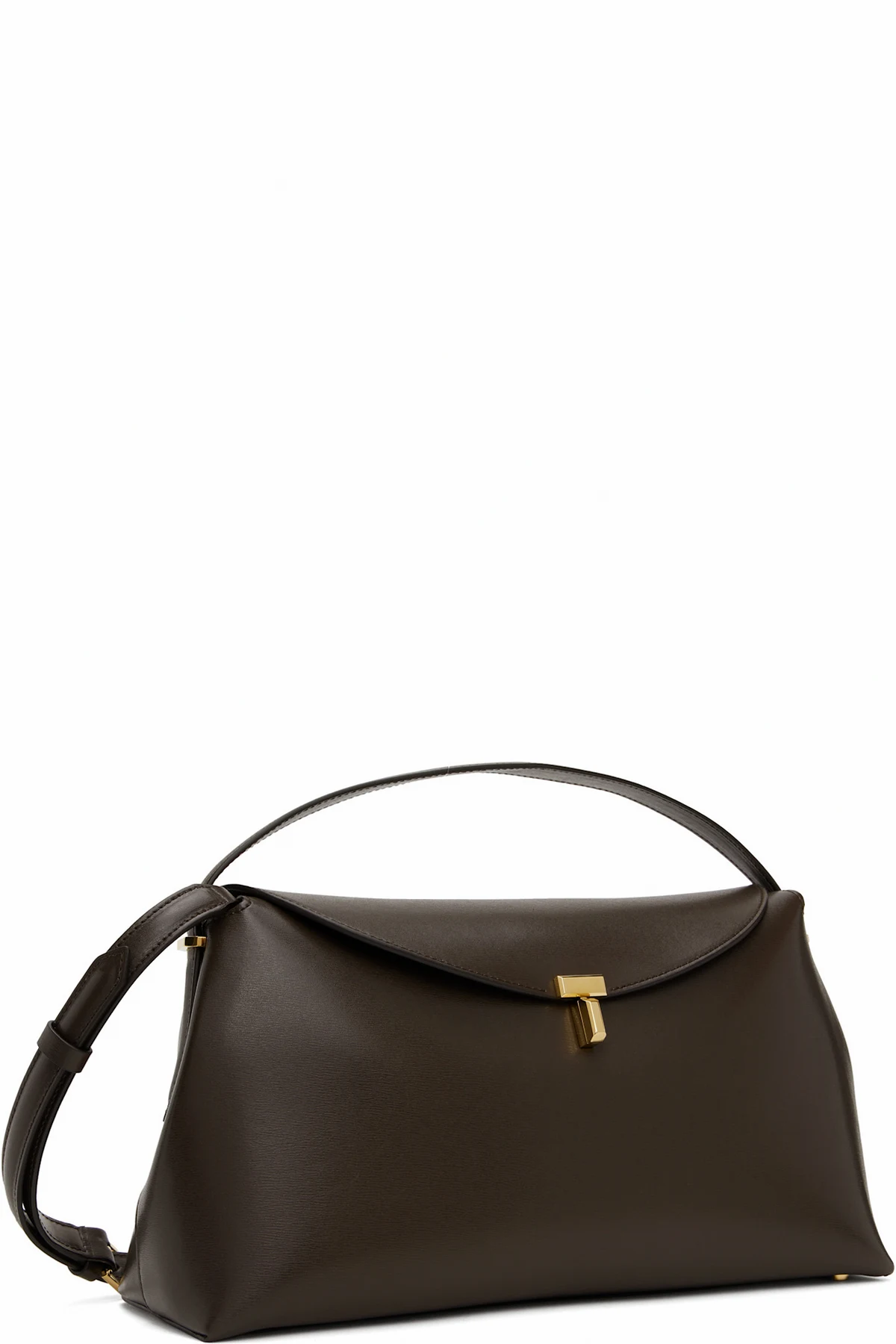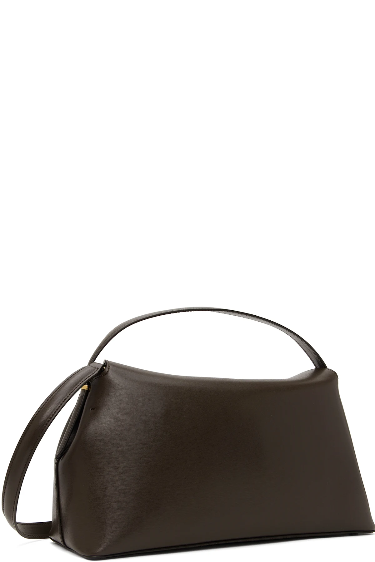 LWG-certified palmellato leather top handle bag in brown.