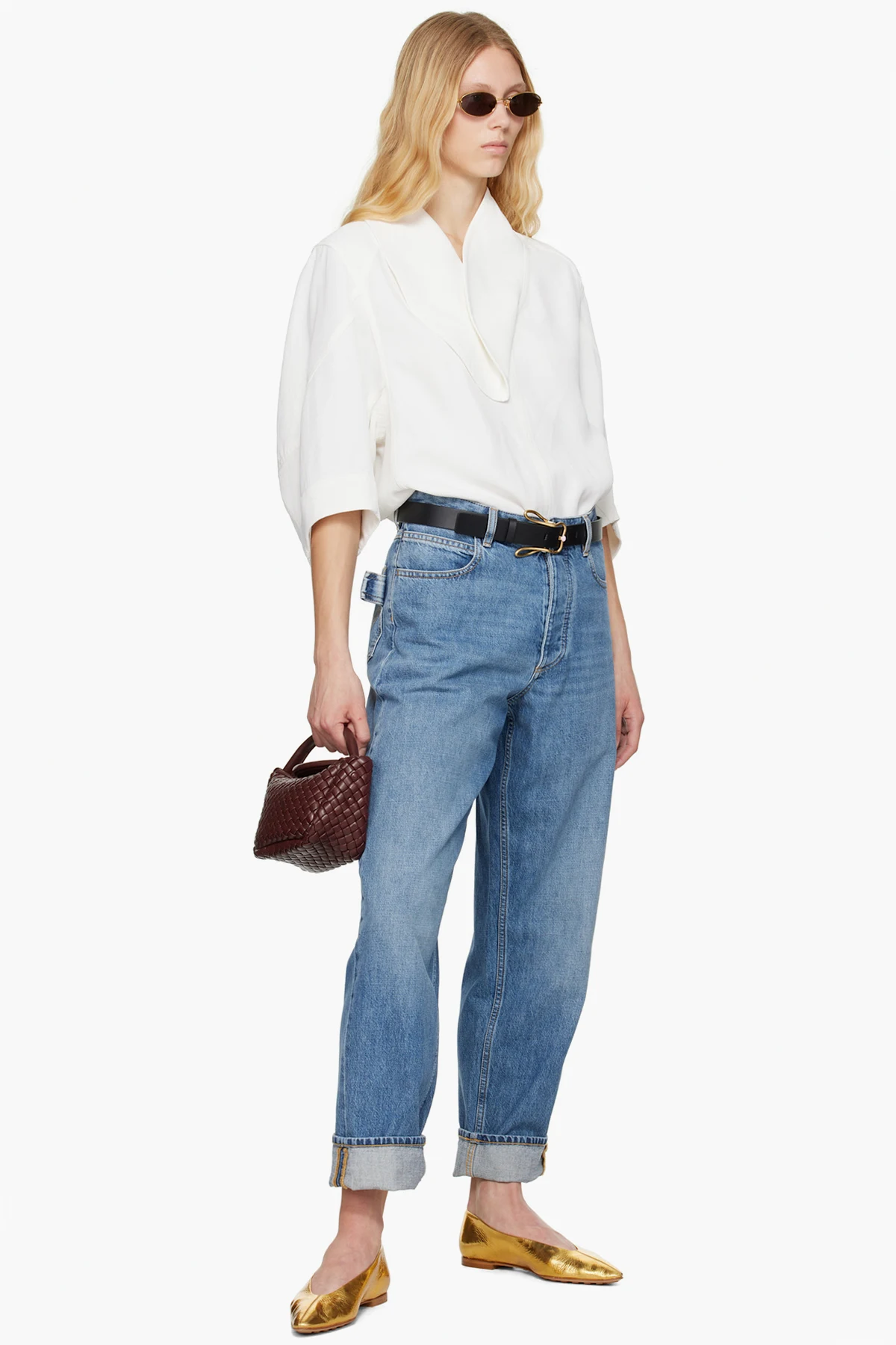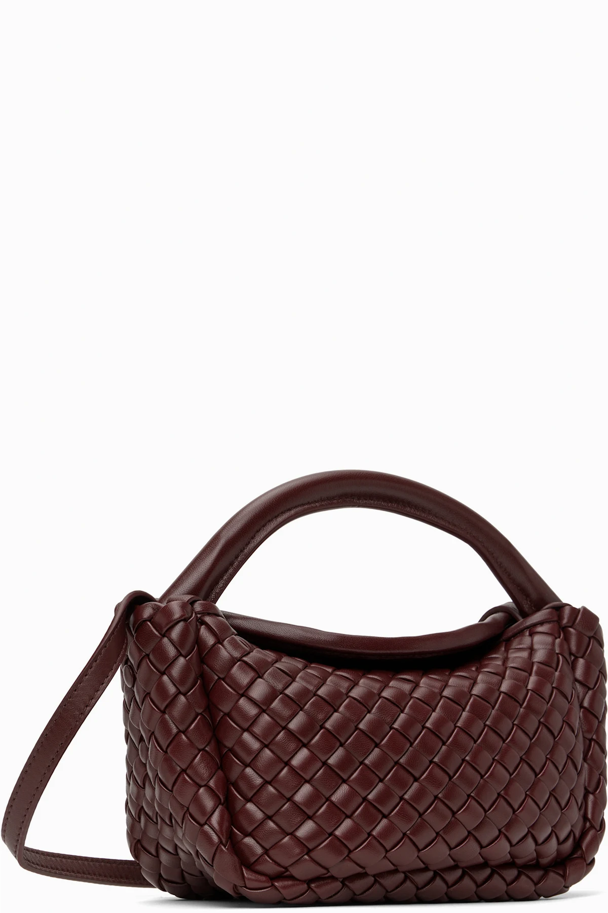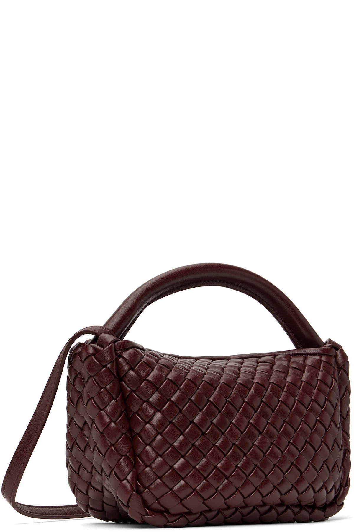 Padded intrecciato-woven buffed lambskin top handle bag in burgundy.