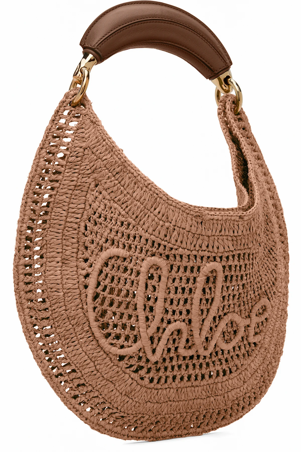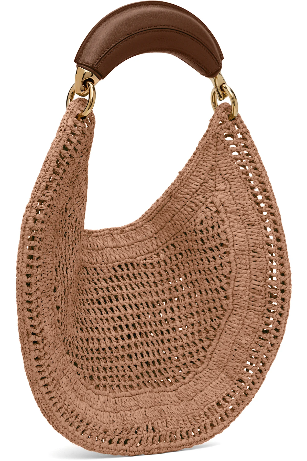 Hand-crocheted faux-raffia top handle bag in beige.