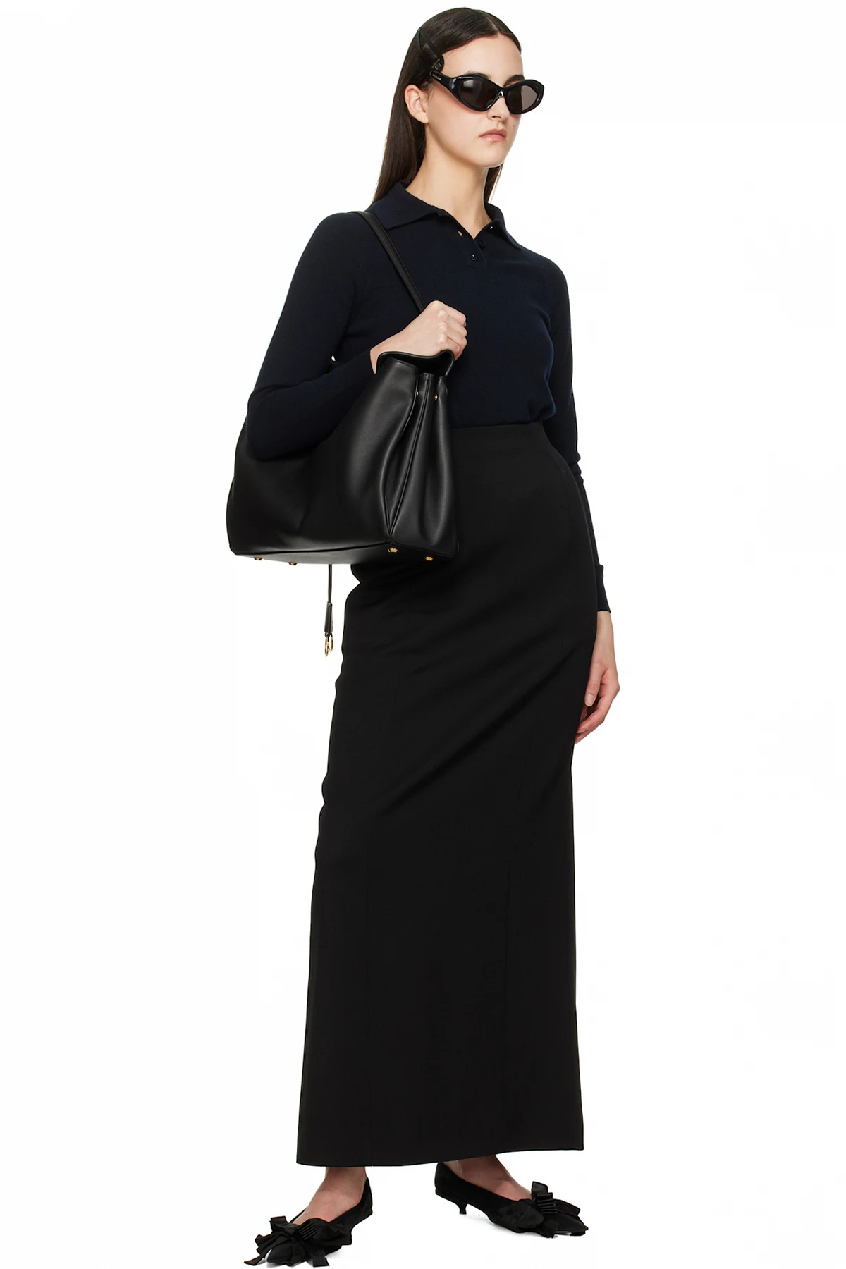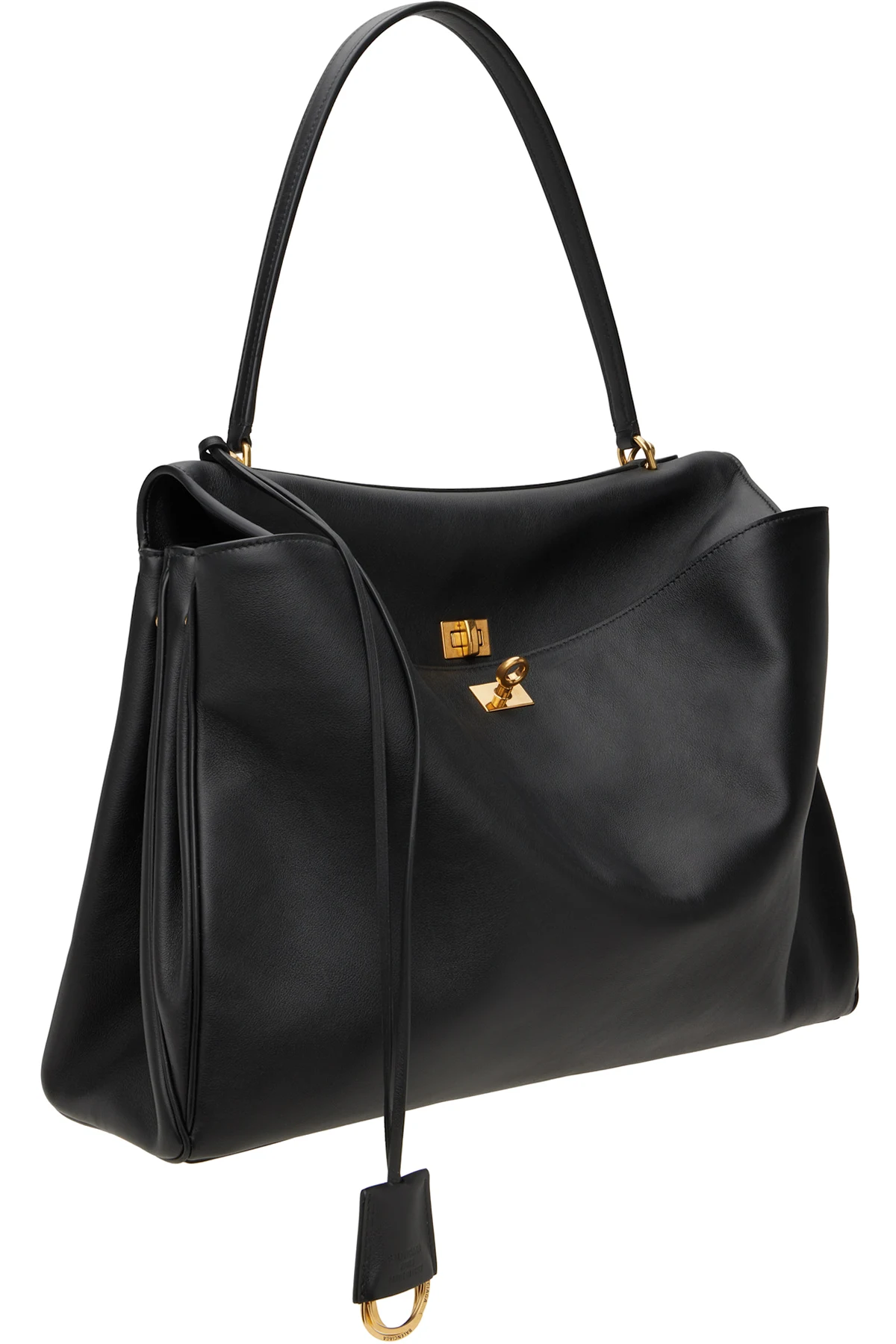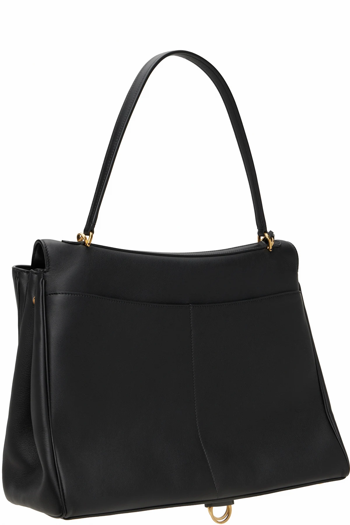Grained calfskin top handle bag in black.