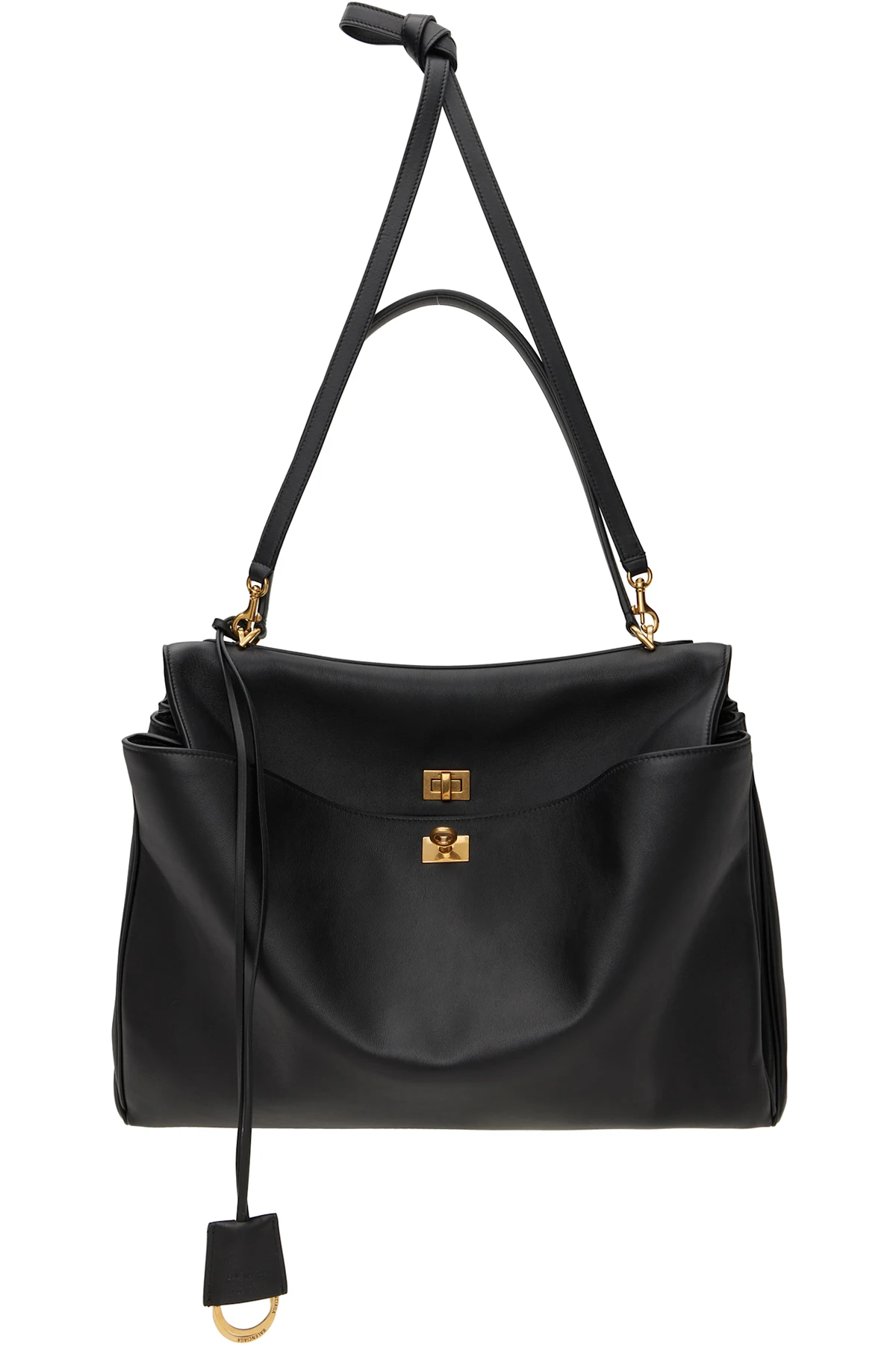 · Logo-engraved antiqued gold-tone hardware