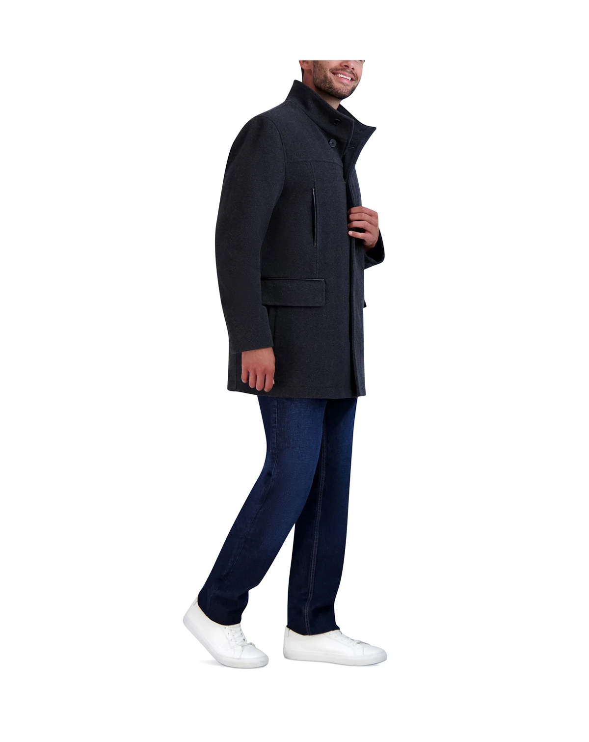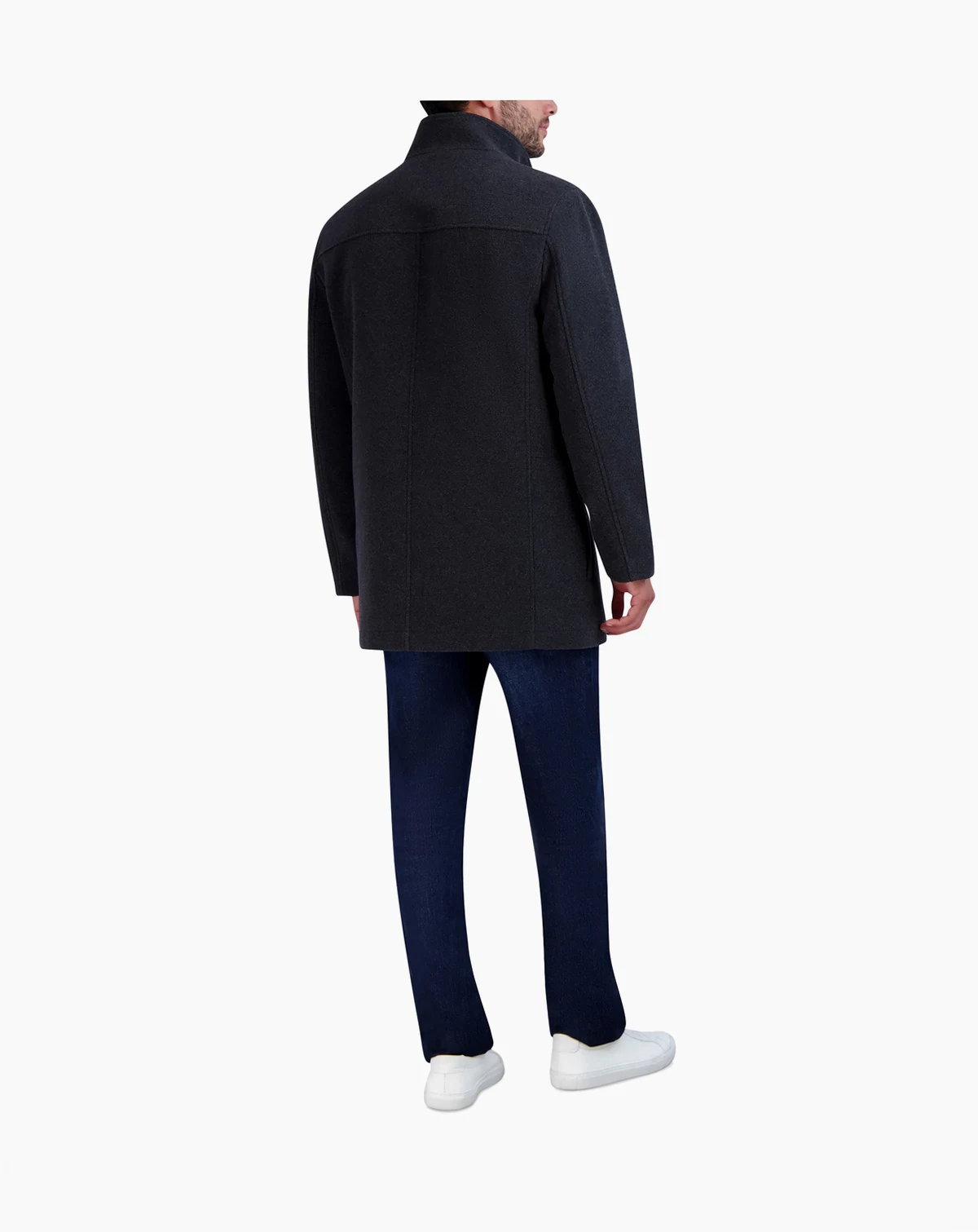 A rich wool-blend provides cozy warmth on this Cole Haan car coat while its covered placket and minimalist lines present a sleek, modern look.