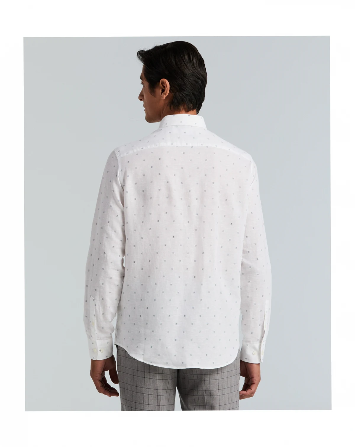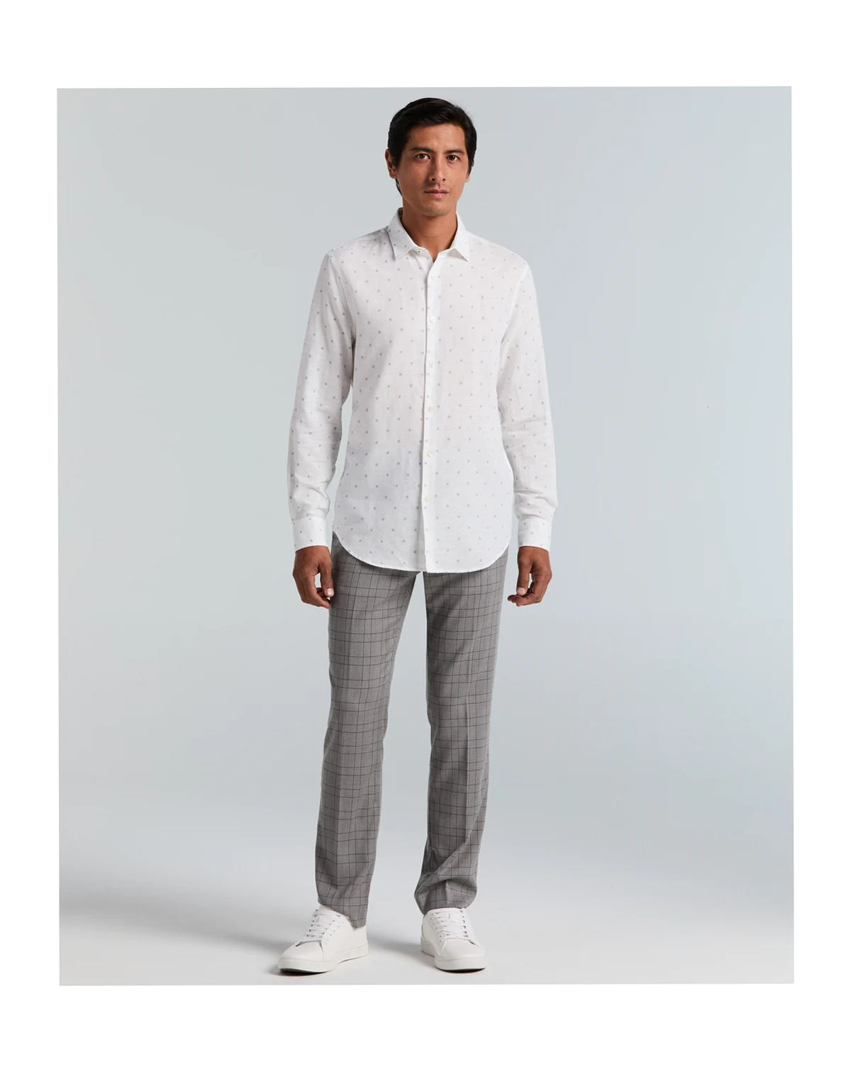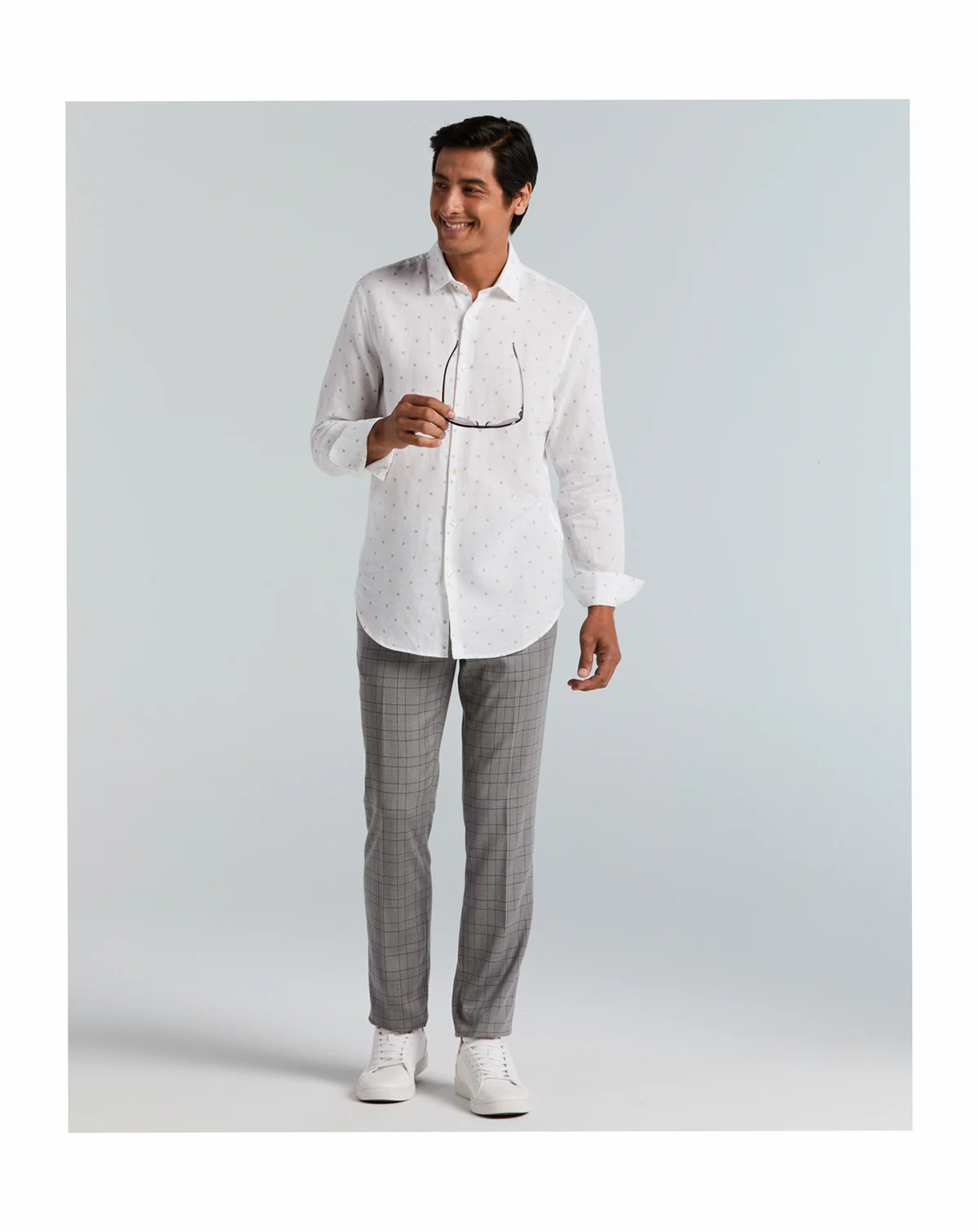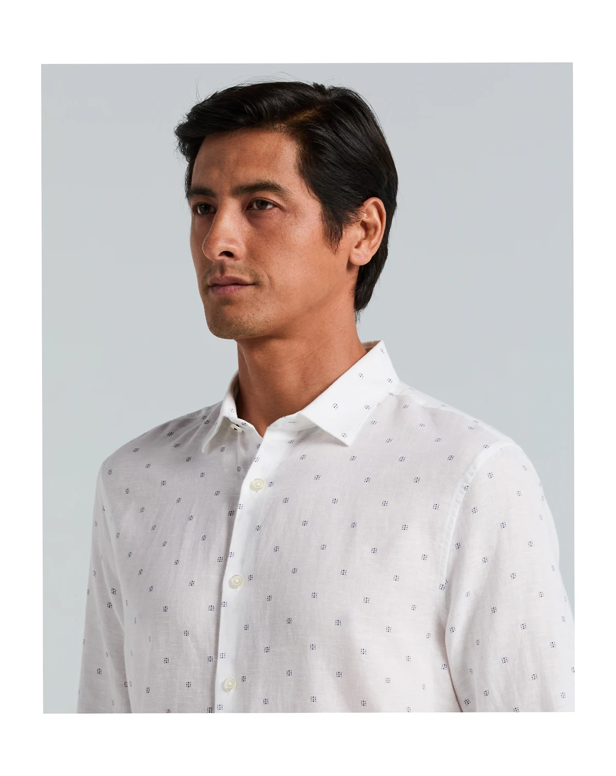Project a polished, contemporary look in this Perry Ellis shirt, featuring a refined geo dot print and a versatile spread collar. Designed with long sleeves and a regular fit, it delivers a sharp, effortless style for work or leisure.